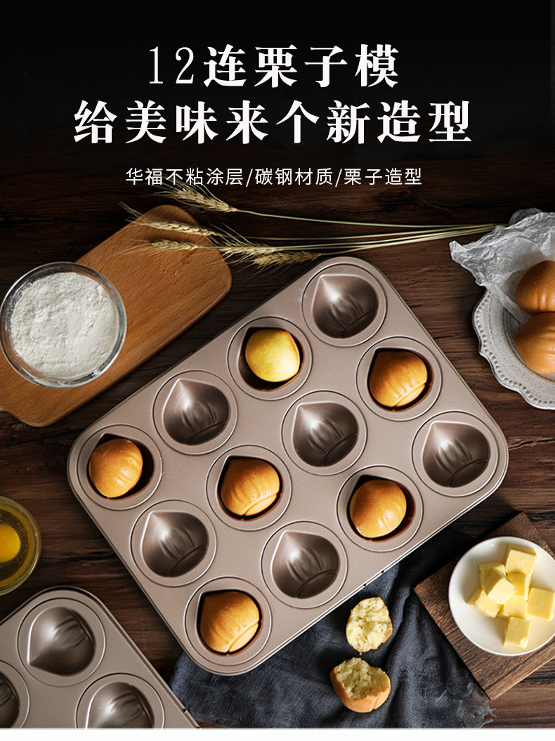 Интернет -знаменитость не -старинка каштана Мадлен плесень 12 лианляйская модель температура дома торт выпечка плесень не сглаженной плесени сковороды