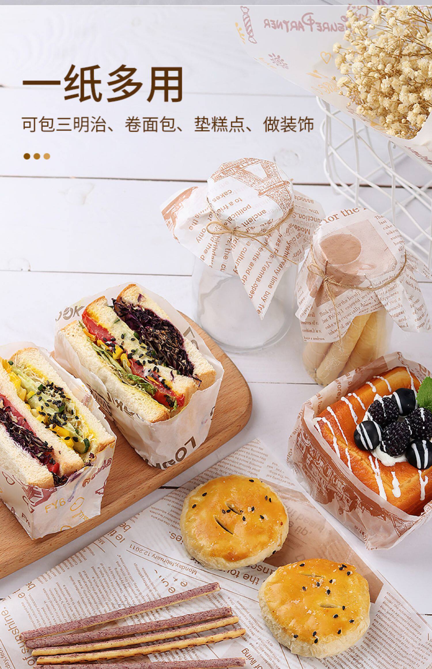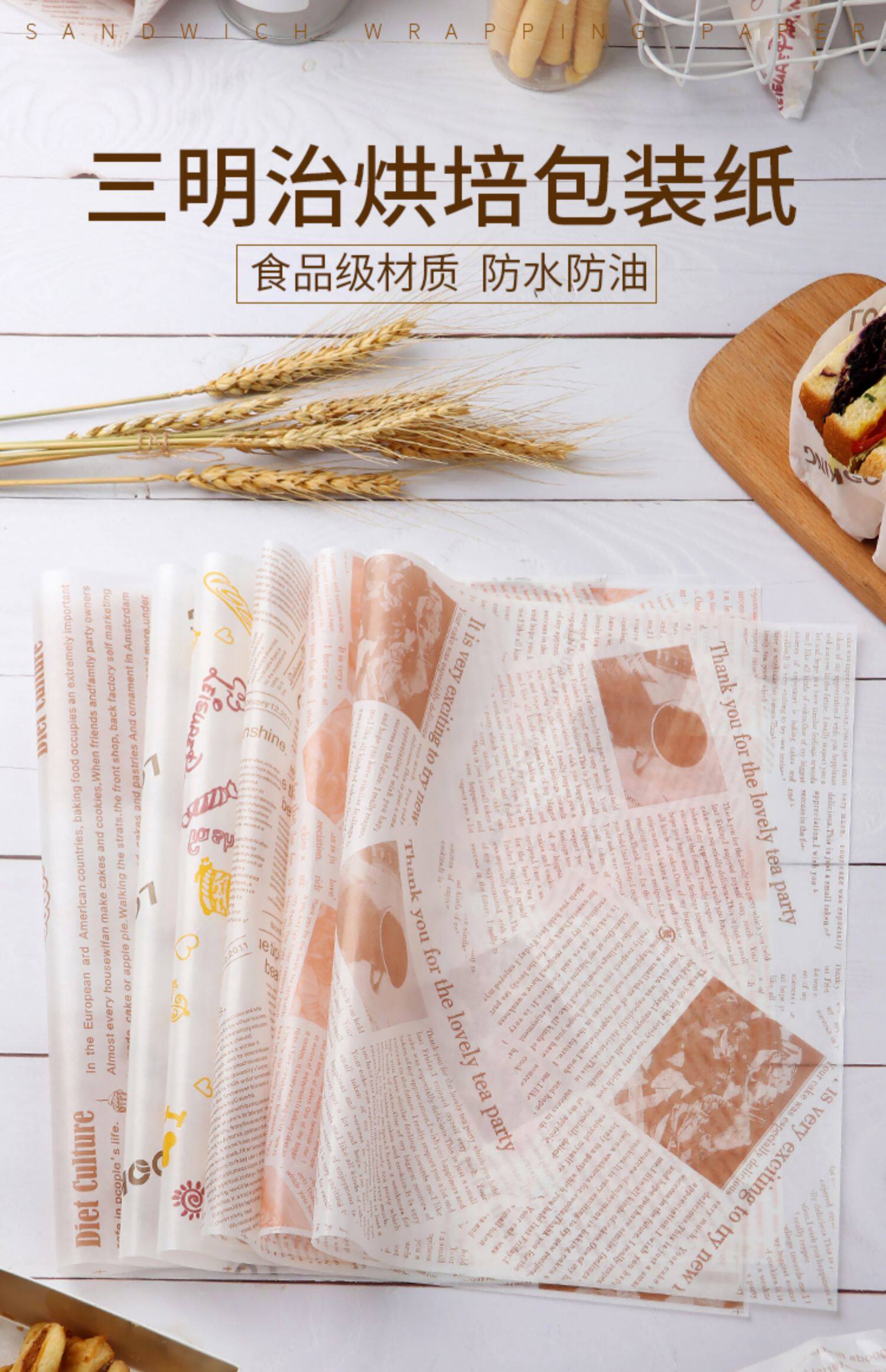 Упакованная упаковочная бумага одноразовая обжаренная масляная бумага Утолщенная поддона для подплектчики бумаги для барбекю сэндвичи с бутербранными гамбургерами.