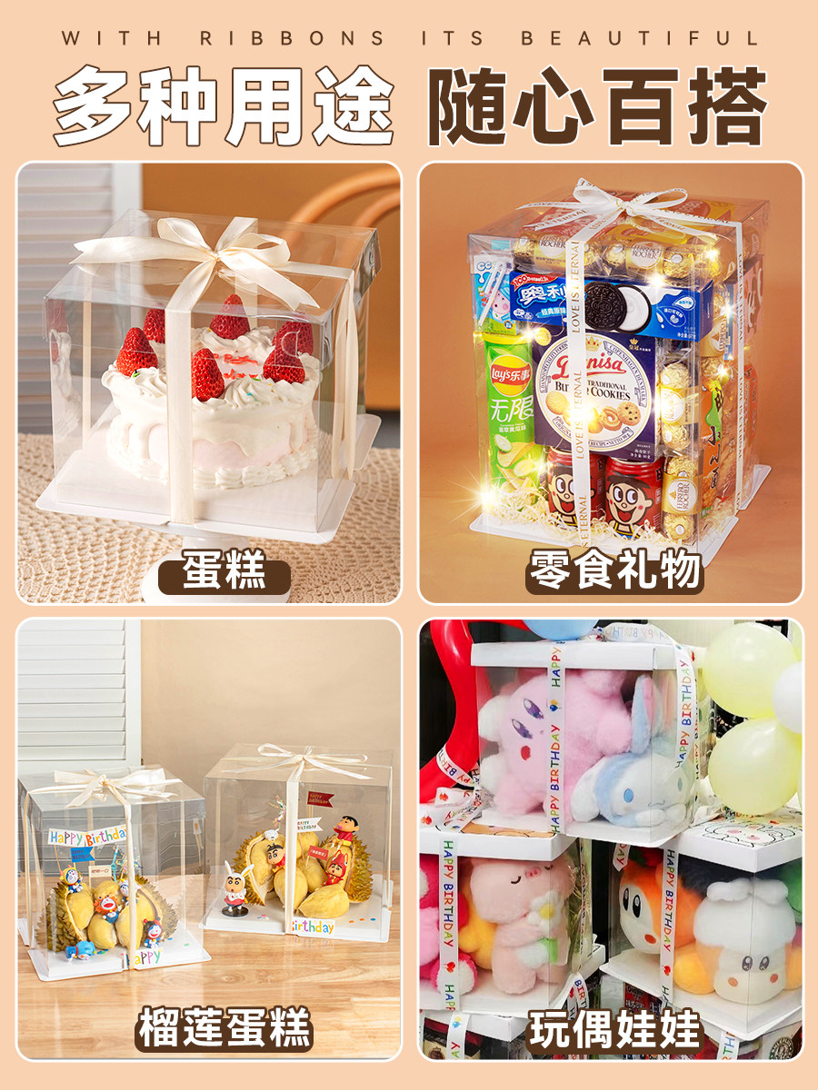 Прозрачная упаковочная коробка для торта на день рождения упаковка 4 четыре дюйма 5 дюймов 5 шесть восемь 68 высот 10 десять 12 маленьких двойных трех слоев