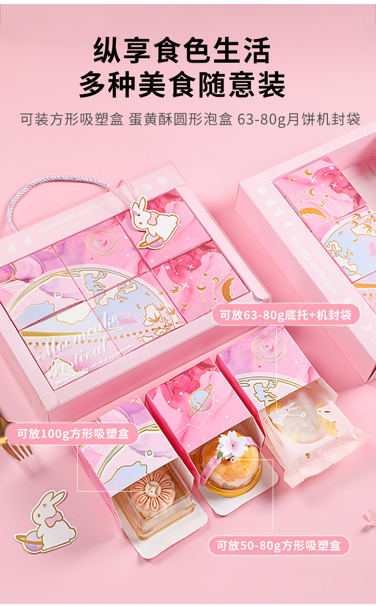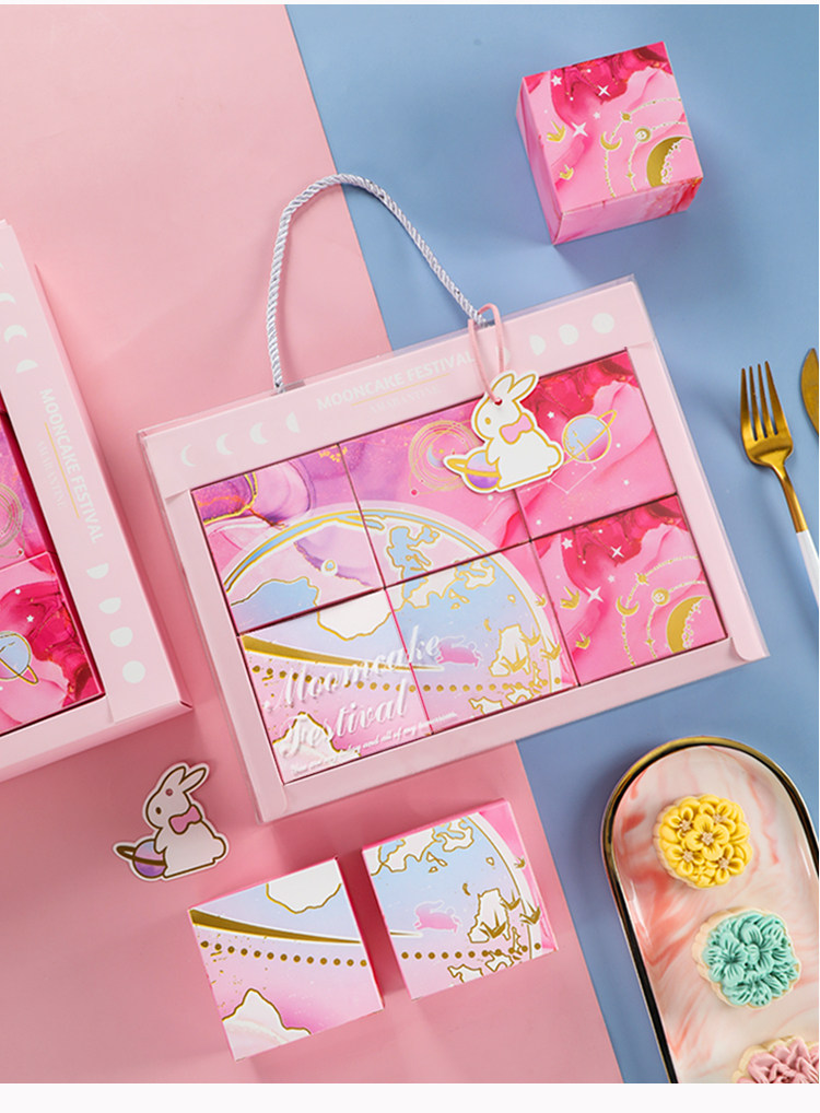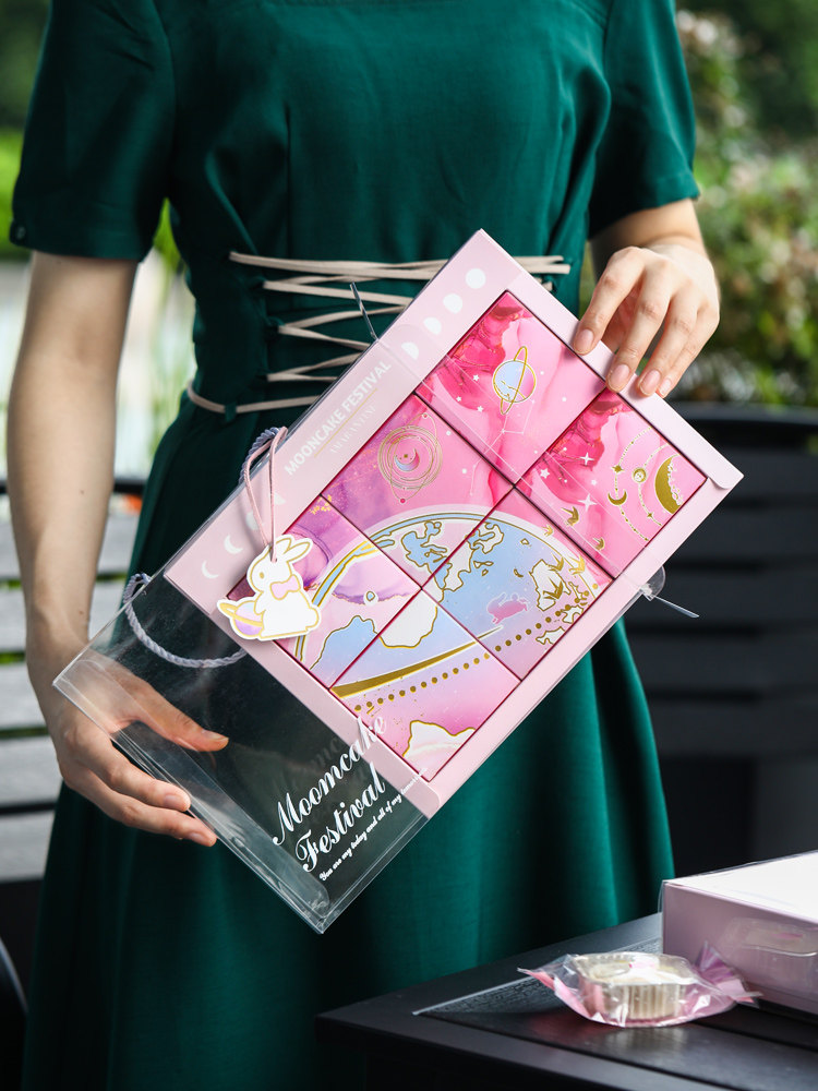 Средний фестиваль фестиваль Mooncake Packaging Box Подарочная коробка Smoh High -End Creative Ice Skin Cake 6 -Granite Box 4 Ge 4 Grid