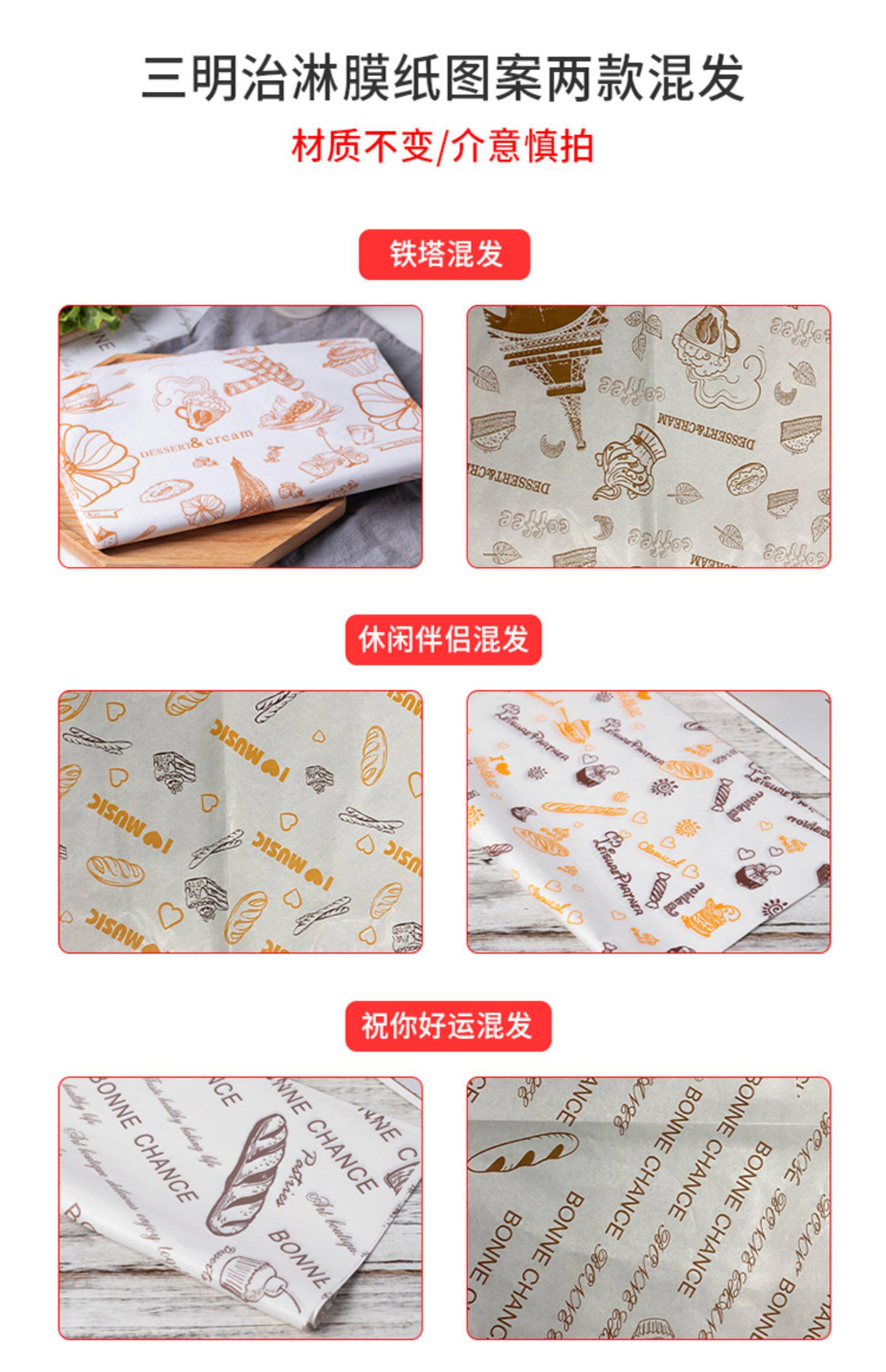 Упаковочная упаковочная упаковочная бумага -Проницаемое одноразовое пищевое питание -Область тост Sanyewen Burger Paper можно вырезать, чтобы выпекать домой