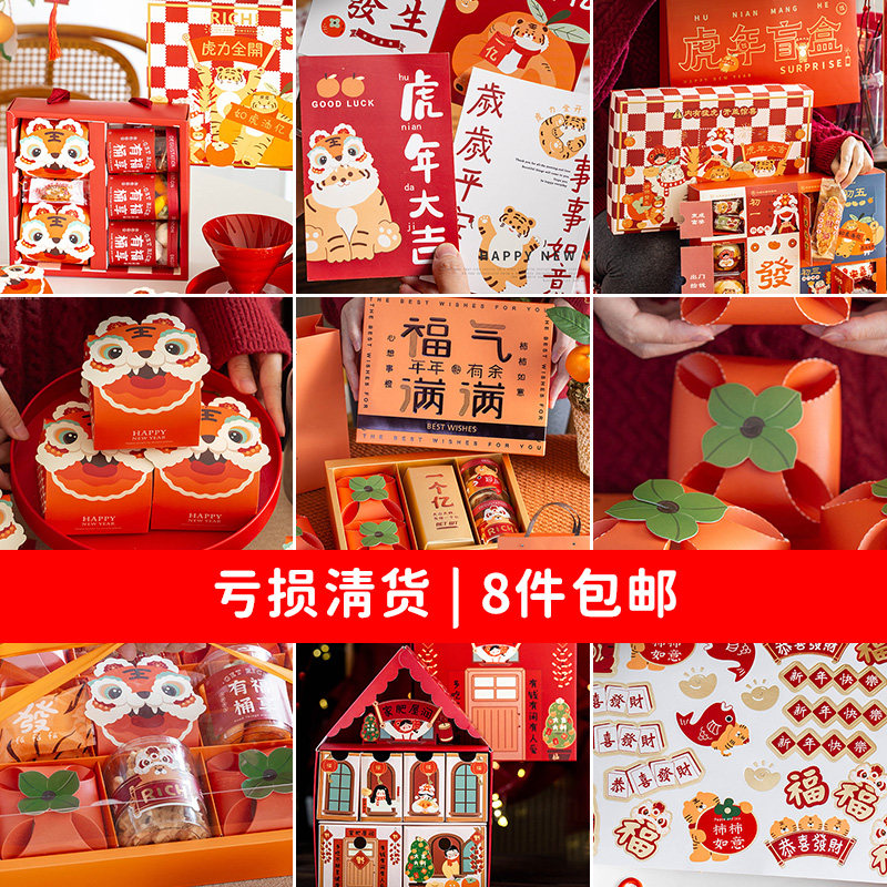 [Снижение зазора] Слепая коробка Тигр Год новогодней новогодней бокс -бокс -коробки пустая коробка подарки, конфеты самостоятельно сделаны