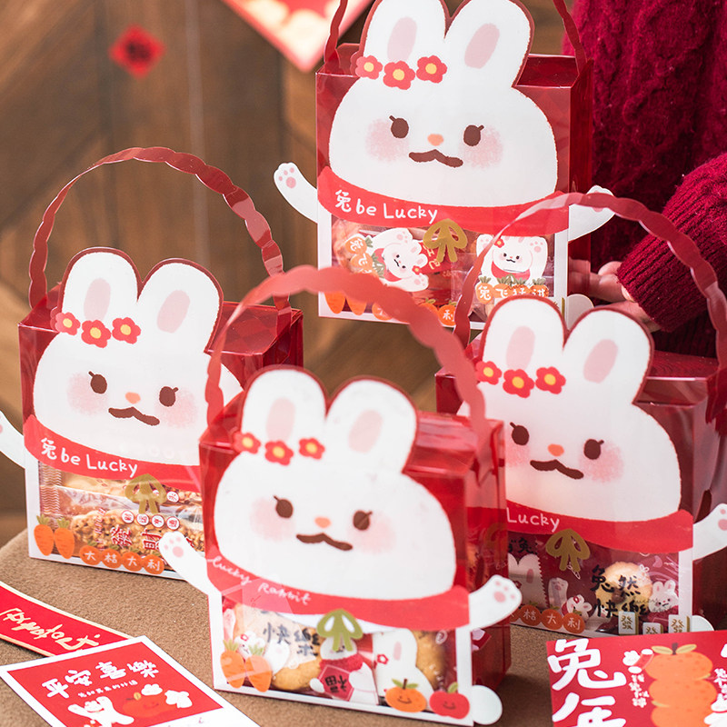 Подарочная коробка, упаковка, клейкий рис, 2023, год кролика, со снежинками