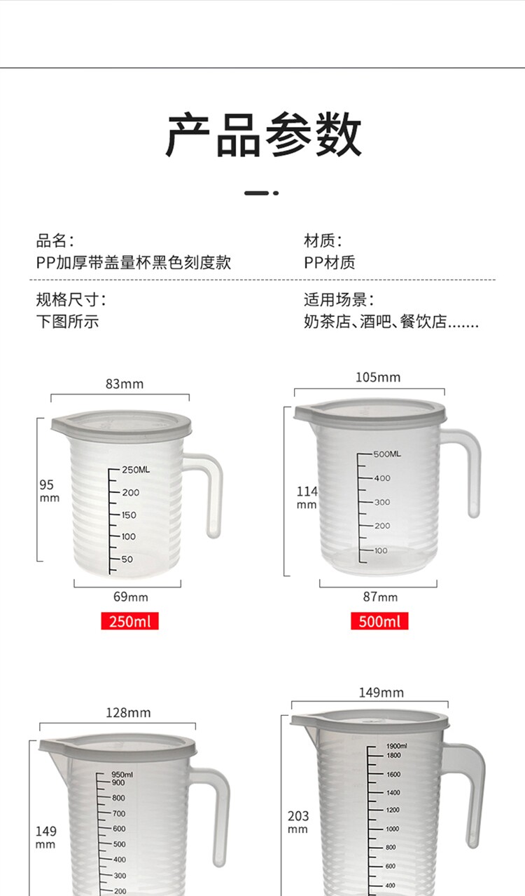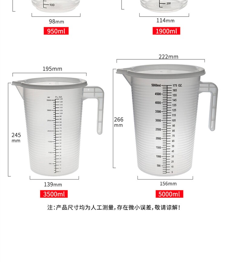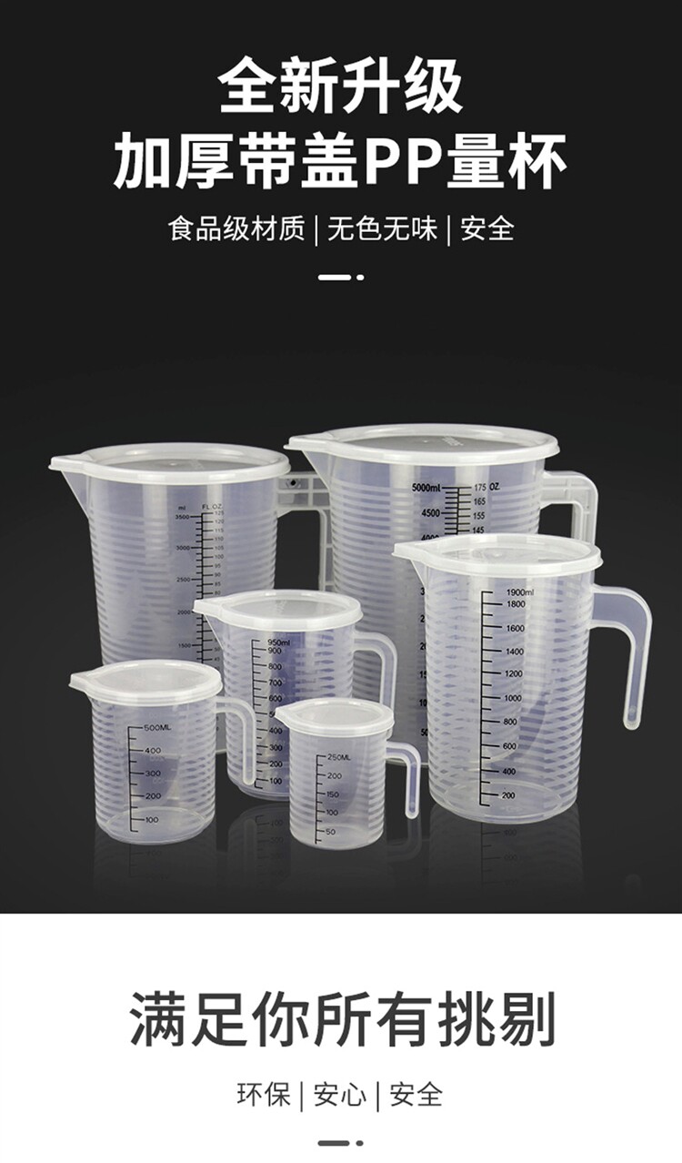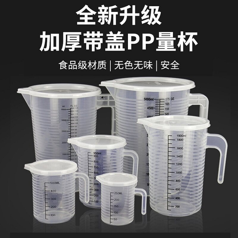 Утолщенный мерный стакан из полипропилена с двойной шкалой и крышкой, 250/500/1000-5000 мл, пластиковый стаканчик для чая с молоком, пищевой пластиковый стаканчик