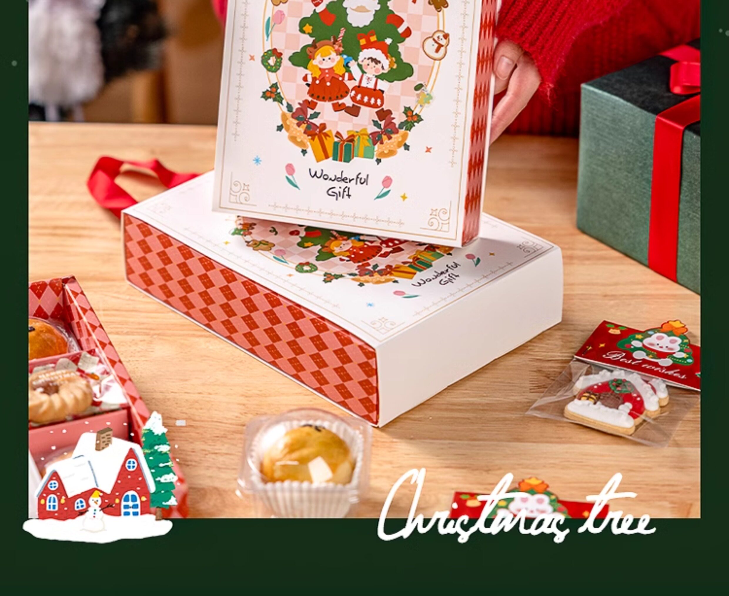 Рождественская печенья упаковочная коробка для печенья заморозок подарочная коробка изделия пустые пекарня творческая рука желточный торт 2023 Раздел 2023
