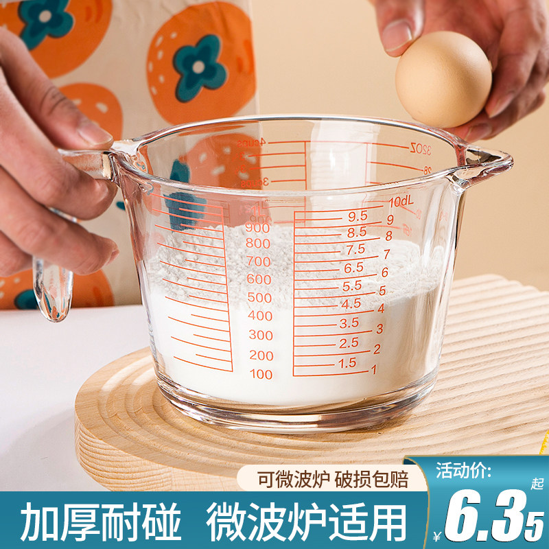 Стеклянная чашка с большой пропускной способностью с шкалой ручки ML-метра домохозяйственное температурный температурный устойчивый