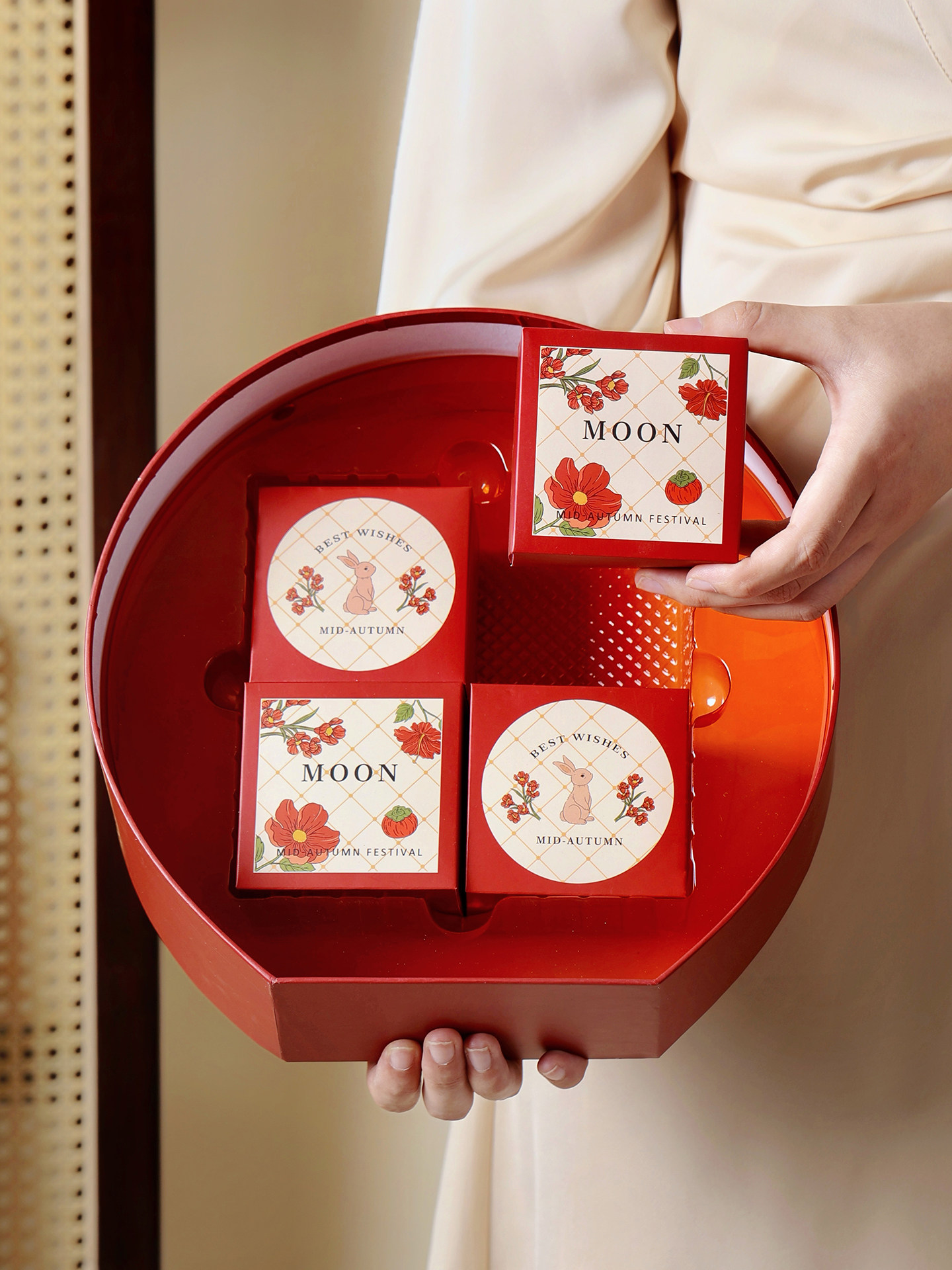 Упаковочная коробка Mooncake, подарочная коробка, подарочная коробка середины осени с отверстием, высокое национальное качество, 6 шт., 8 больших настроек, 2025, новый жесткий красный