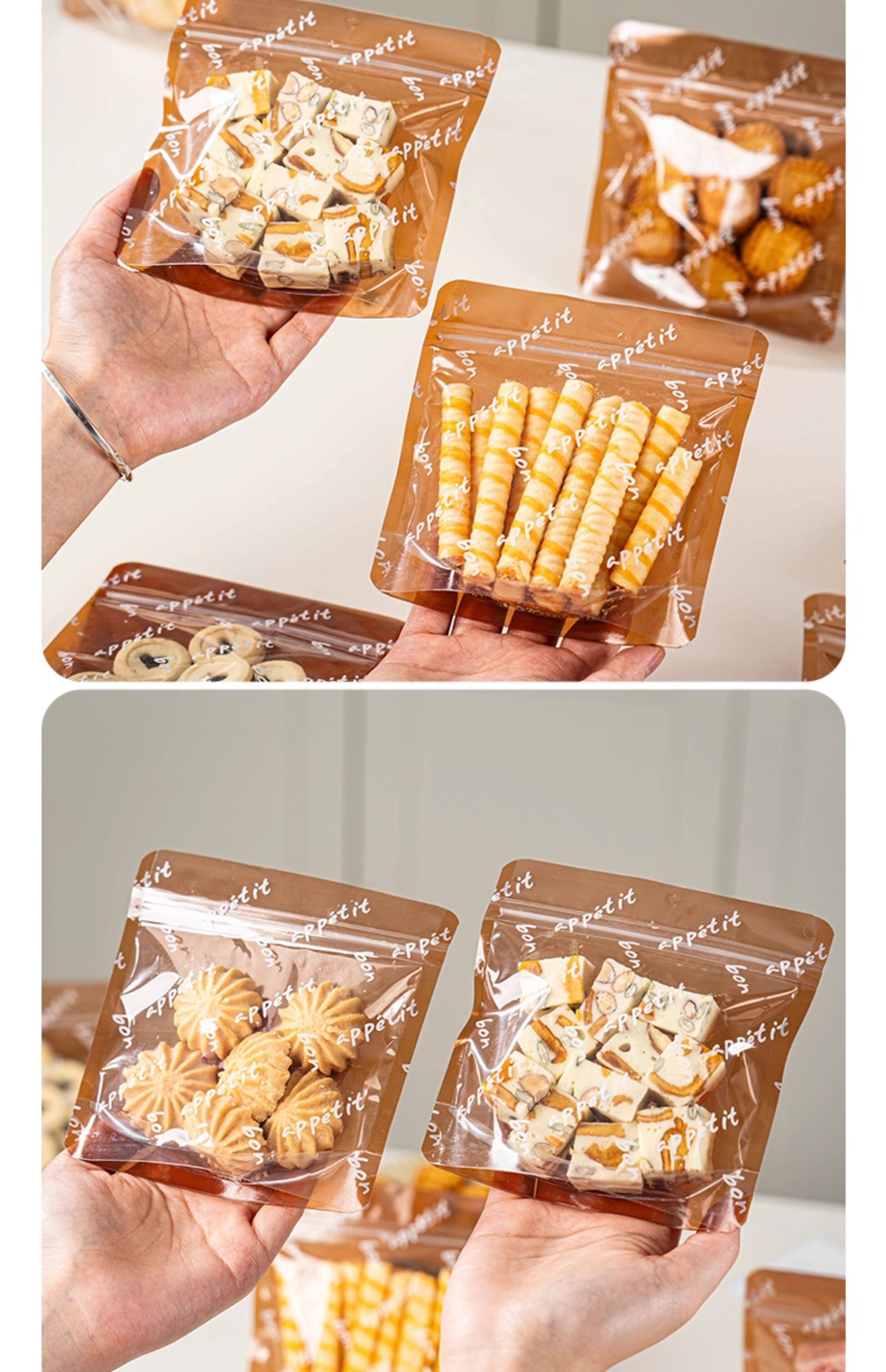 Пакет для сухой упаковки печенья, снежинка, слоеное тесто, самозакрывающийся пакет, прозрачный пакет для выпечки, печенья, конфет, нуги, на молнии, бумажный пакет, индивидуальный маленький