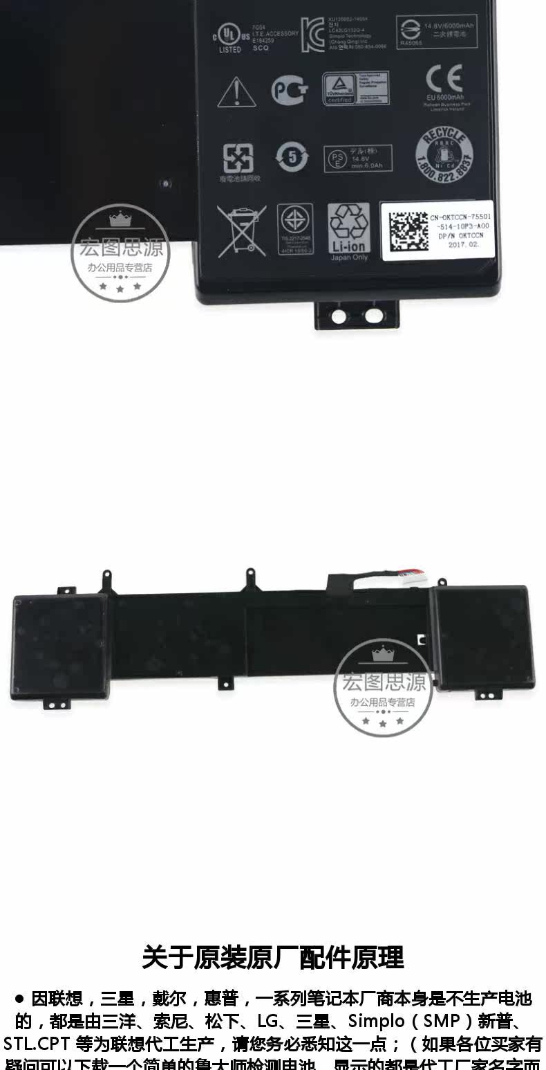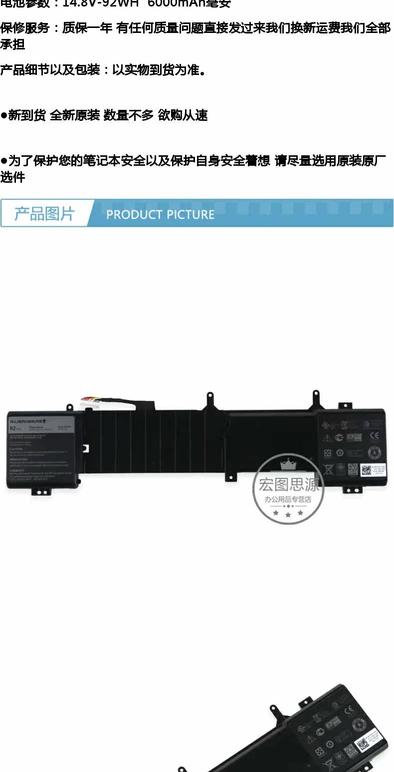 Alien Alienware 17 R2 R3 6JHDV Оригинальная батарея ноутбука P43F 5046J