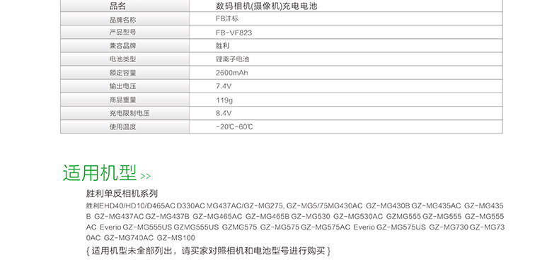 FB/沣标 VF823 JVC BN-VF908 HM1 MG830 HM400 MG575 Батарея камеры