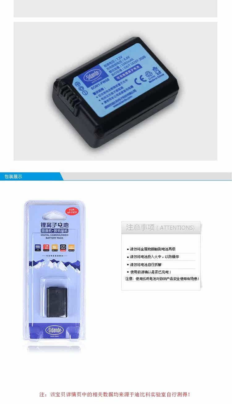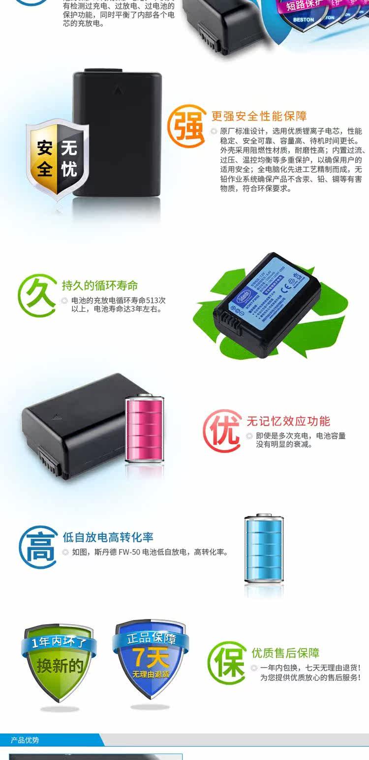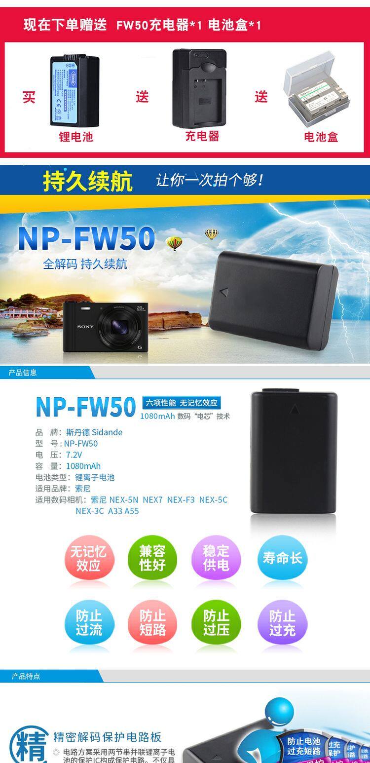 斯丹德 Аккумулятор NP-FW50 подходит для резервного аккумулятора цифровой камеры Sony a6000 a6300 a6400 a6500 a5000 a5100 A7M2 A7R2 A7S2 NEX6 SLR.