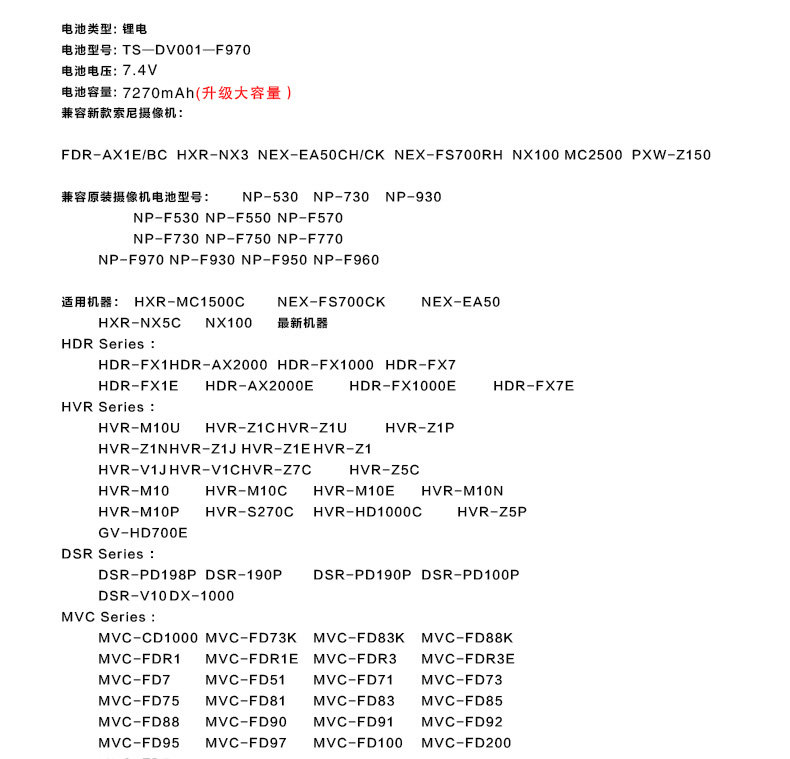 Pin Sheng F970 Батарея подходит для Sony Sony MC2500 NX100 Z5C HXR-NX3 NPF 970 1500C 2500C F550 F750 Z150 NX5C Camera DV Machine