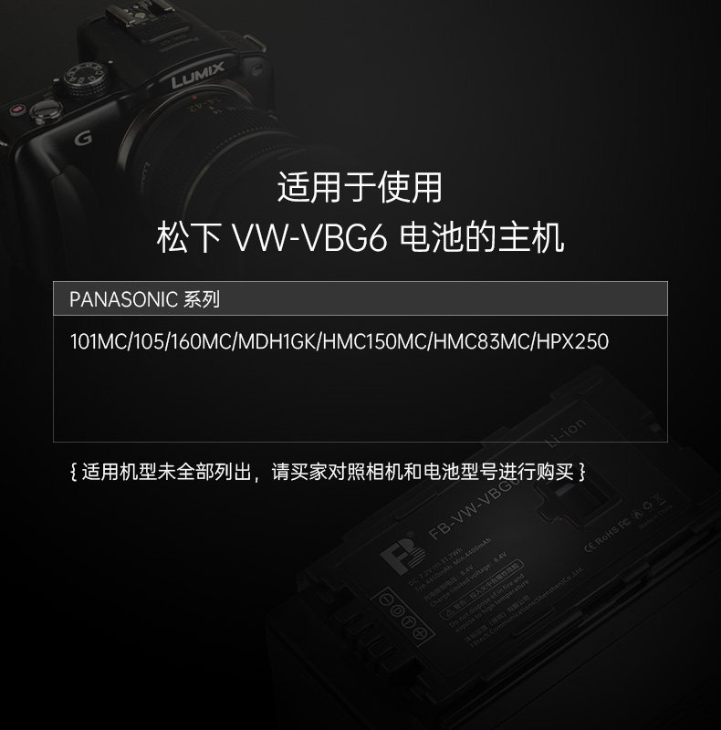 Батарея Bid FB-VW-VBG6 подходит для Panasonic AC130 160MC HMC83 MDH1GK Батарея камеры