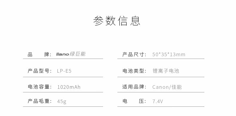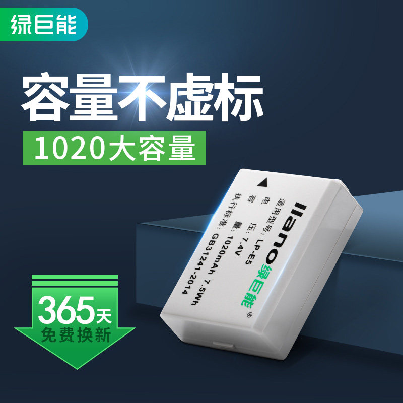 Зеленая гигантская батарея камеры LP-E5 подходит для Canon EOS 1000D 450D 500D KISSX2 KISS X3 CANON SLR MICRO MICROGER, Батарея