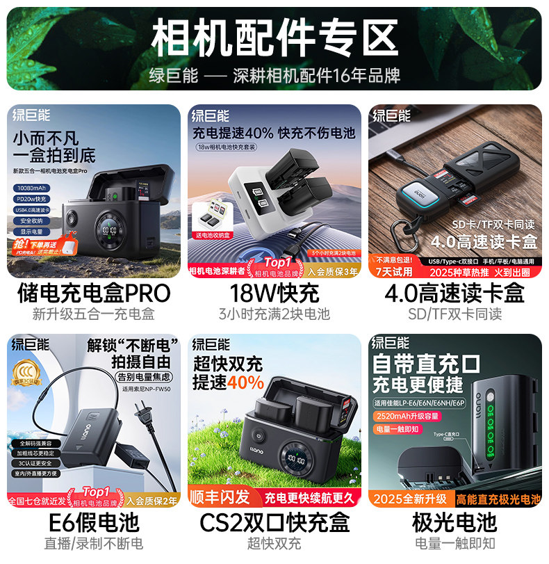 Коробка для быстрой зарядки аккумулятора Green Giant LP-E6NH подходит для зарядного устройства Canon 70D 6D R7 второго поколения R6 R5 60D 80D 90D 5D4 5DMark4
