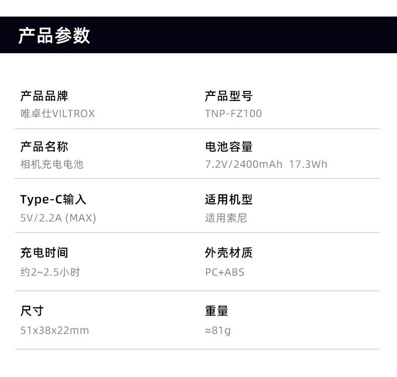 唯卓仕 Батарея камеры TNP-FZ100 подходит для Sony A7C A7M4 A7R3 A6600 FX30 ZVE1