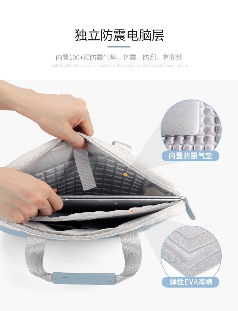 - Лазурные бретели, блок питания, вместительная и большая противоударная водонепроницаемая подушка безопасности, чемодан