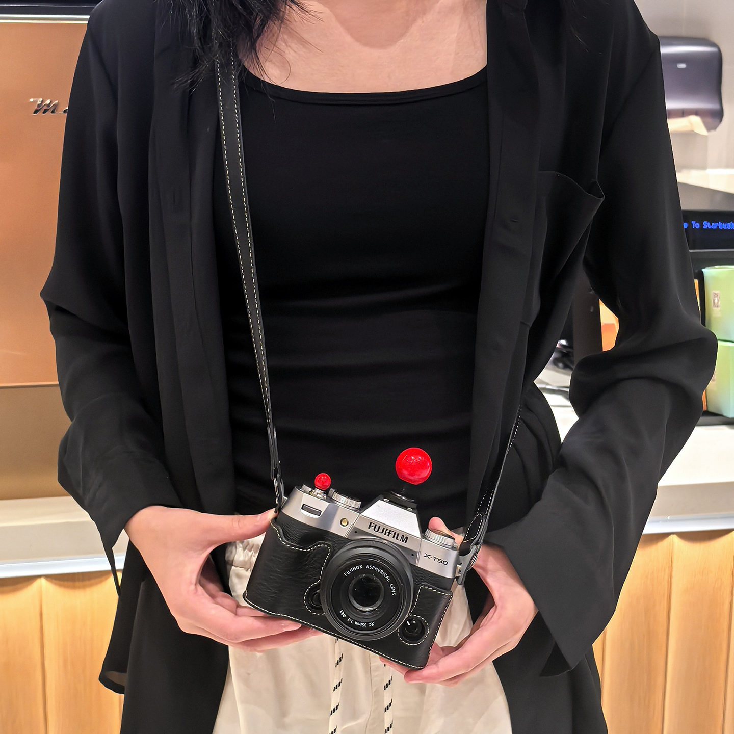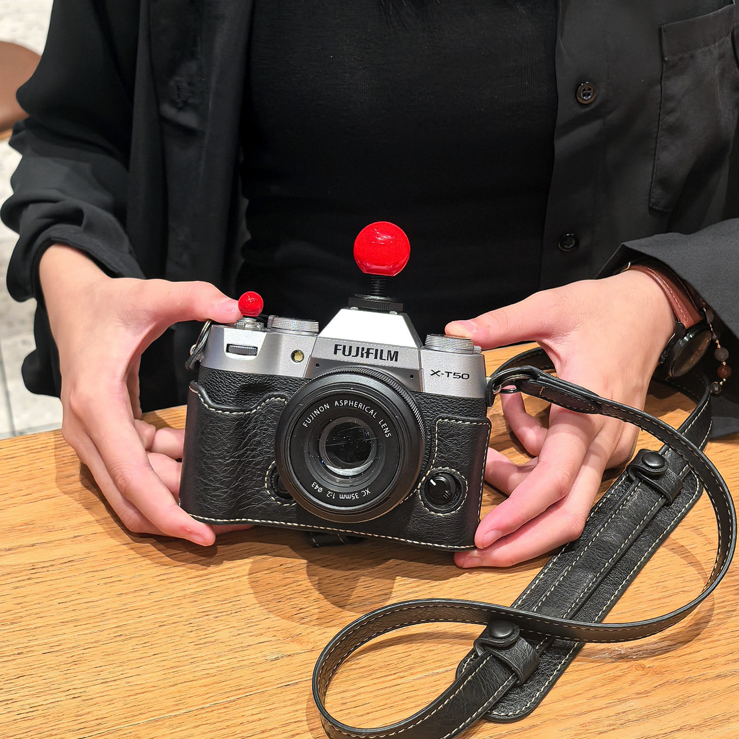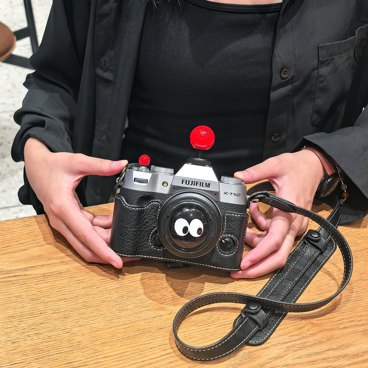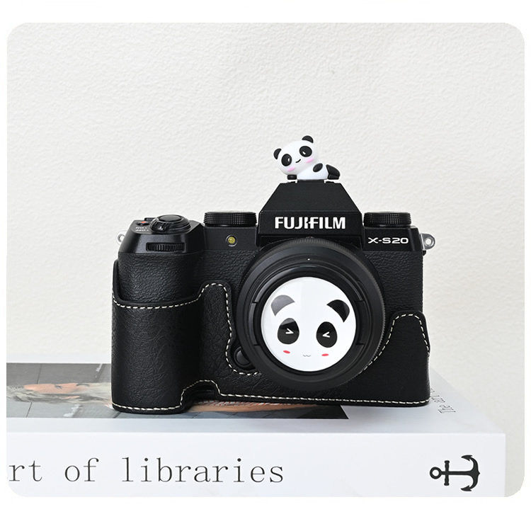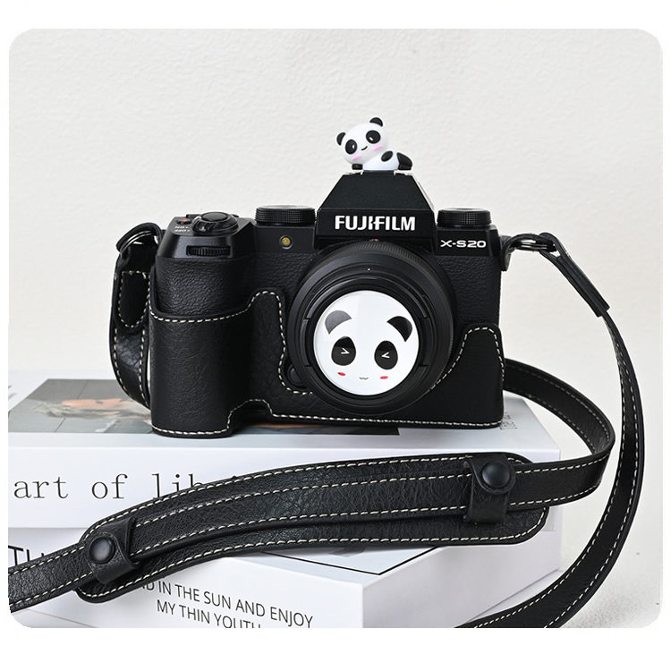 - [XT5] Черная основа + плечевой ремень + горячий башмак в виде красной панды, узор личи, закаленная пленка в комплекте.