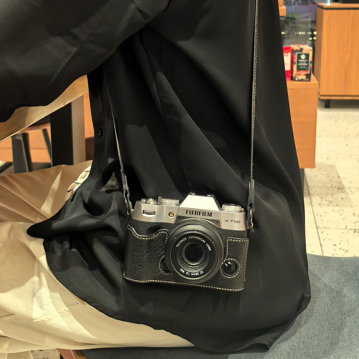 - [XT5] Черная основа + плечевой ремень + горячий башмак Cumillo, узор личи, закаленная пленка в комплекте.