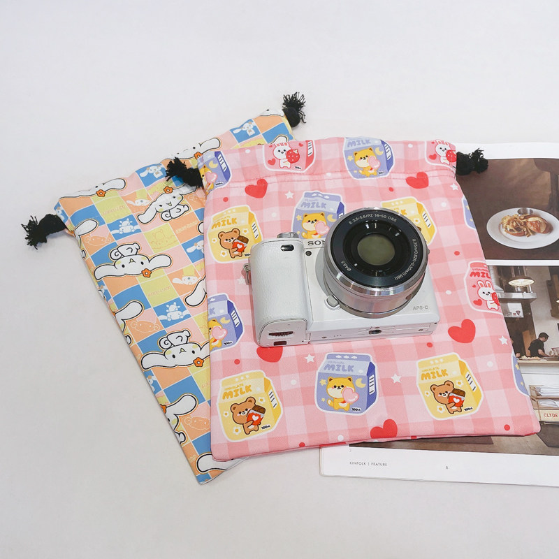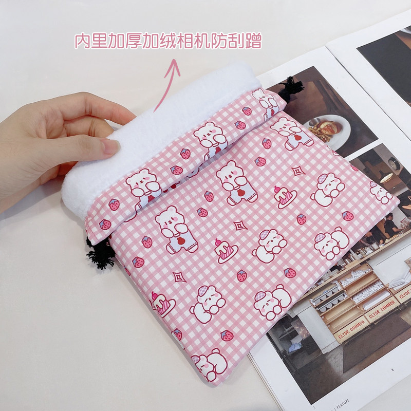 Цифровая камера, сумка для хранения, вкладыш, розовая синяя портативная мультяшная клубника, с медвежатами, на шнурках