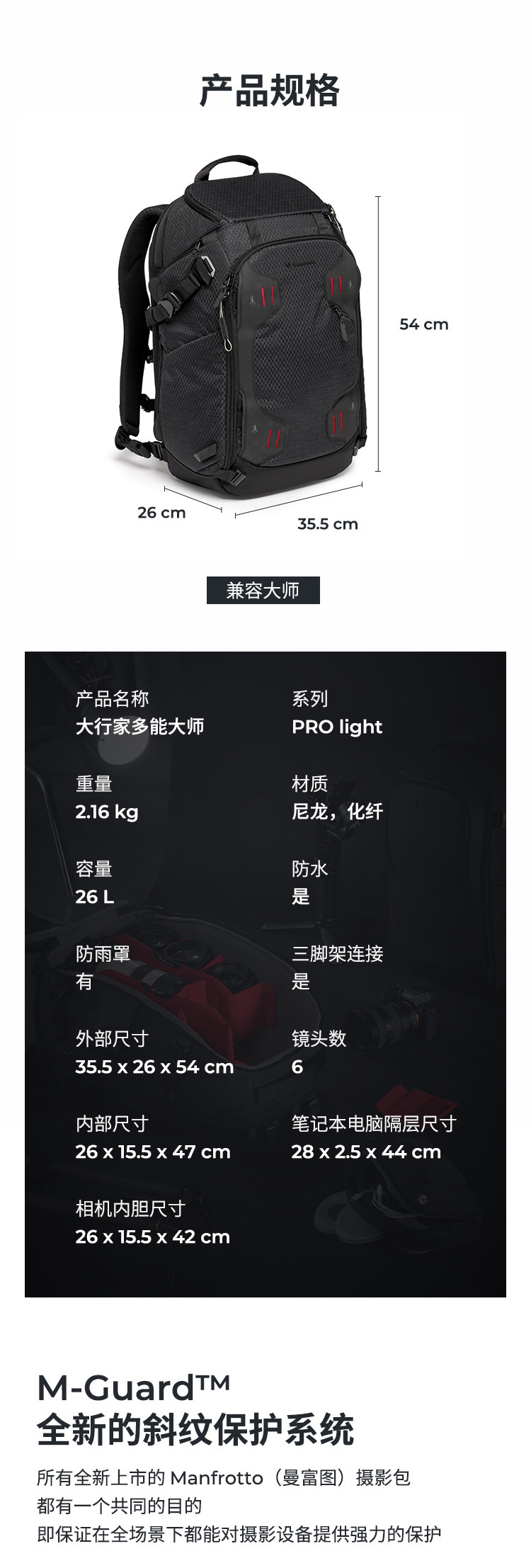 Manfutu Master Camera Camera рюкзак с большой пропускной способностью хранить PL2-BP-ML-M-M