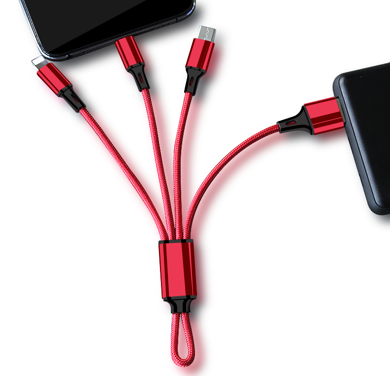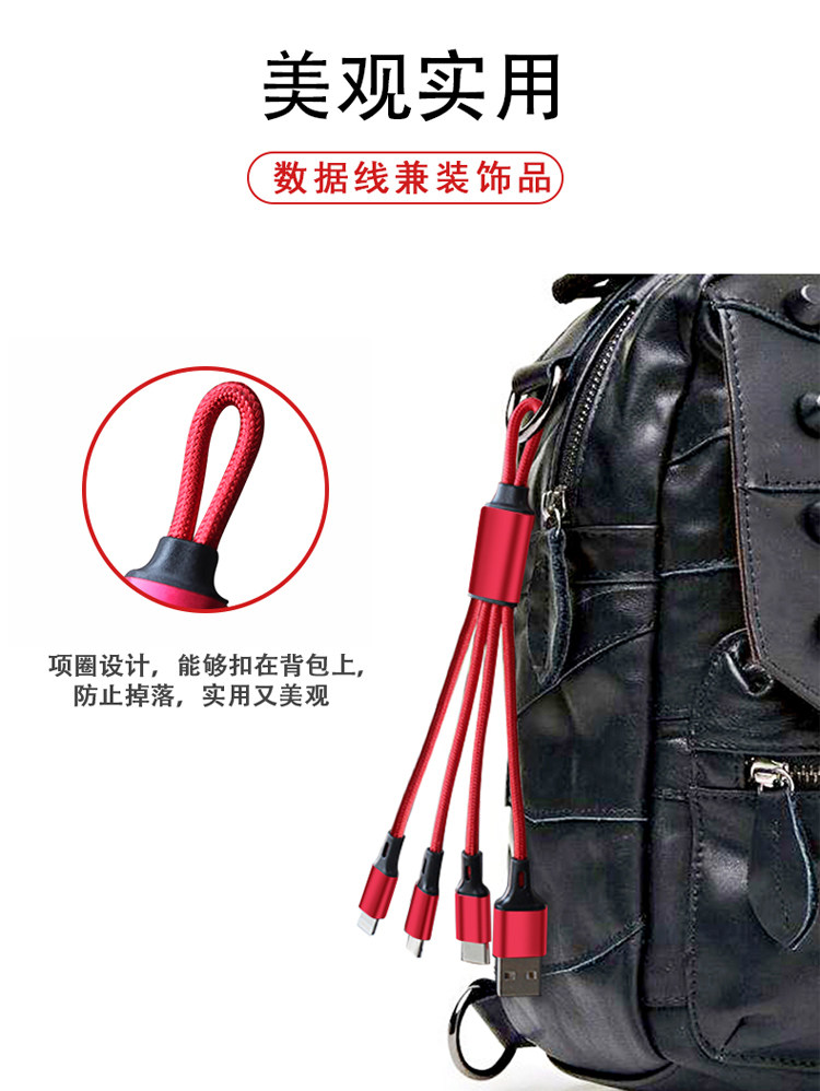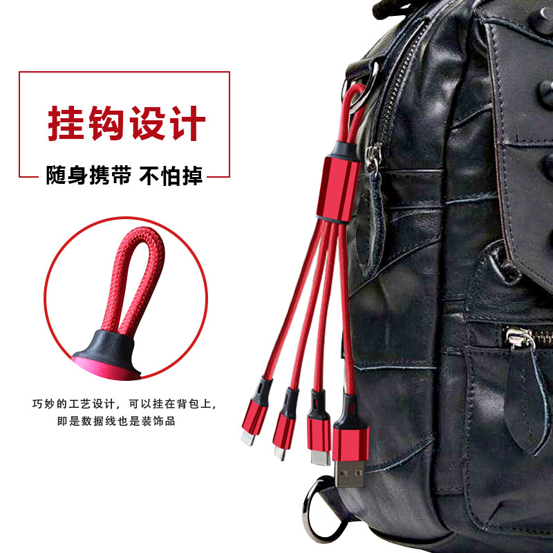 - Плетение одного перетаскивания три [Apple+Android+Type-C] быстрый заряд, 0,18 метра красного света