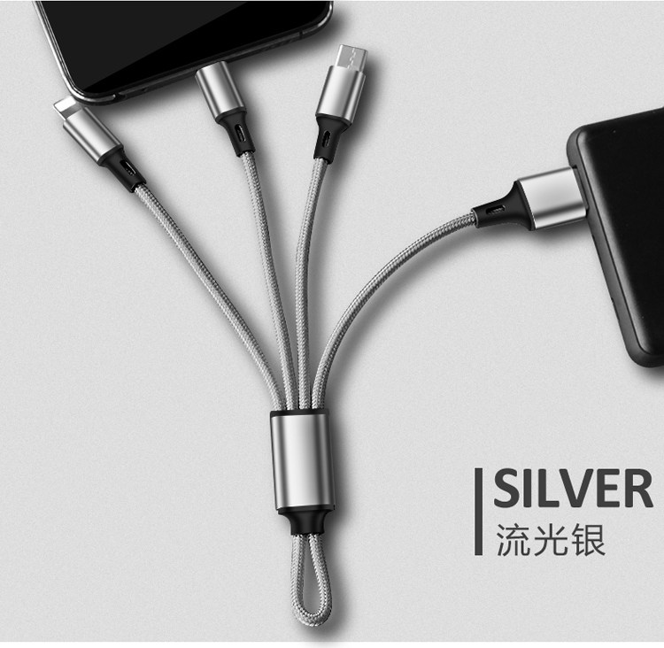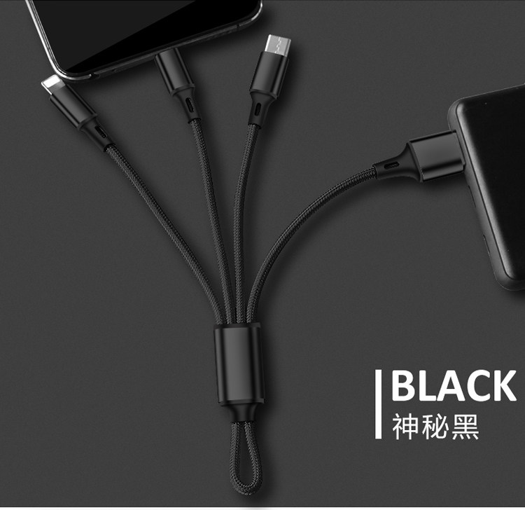 - Плетение одного перетаскивания три [Apple+Android+Type-C] быстрый заряд, 0,18 метра модели излучения черного света