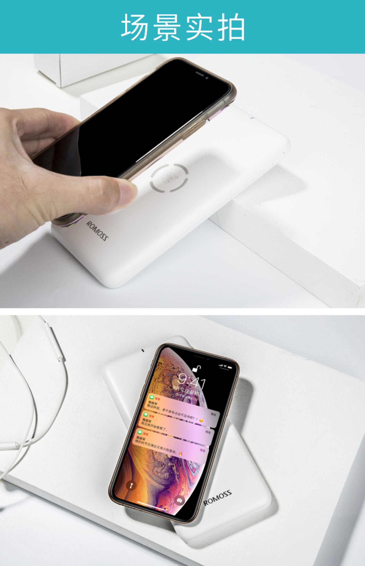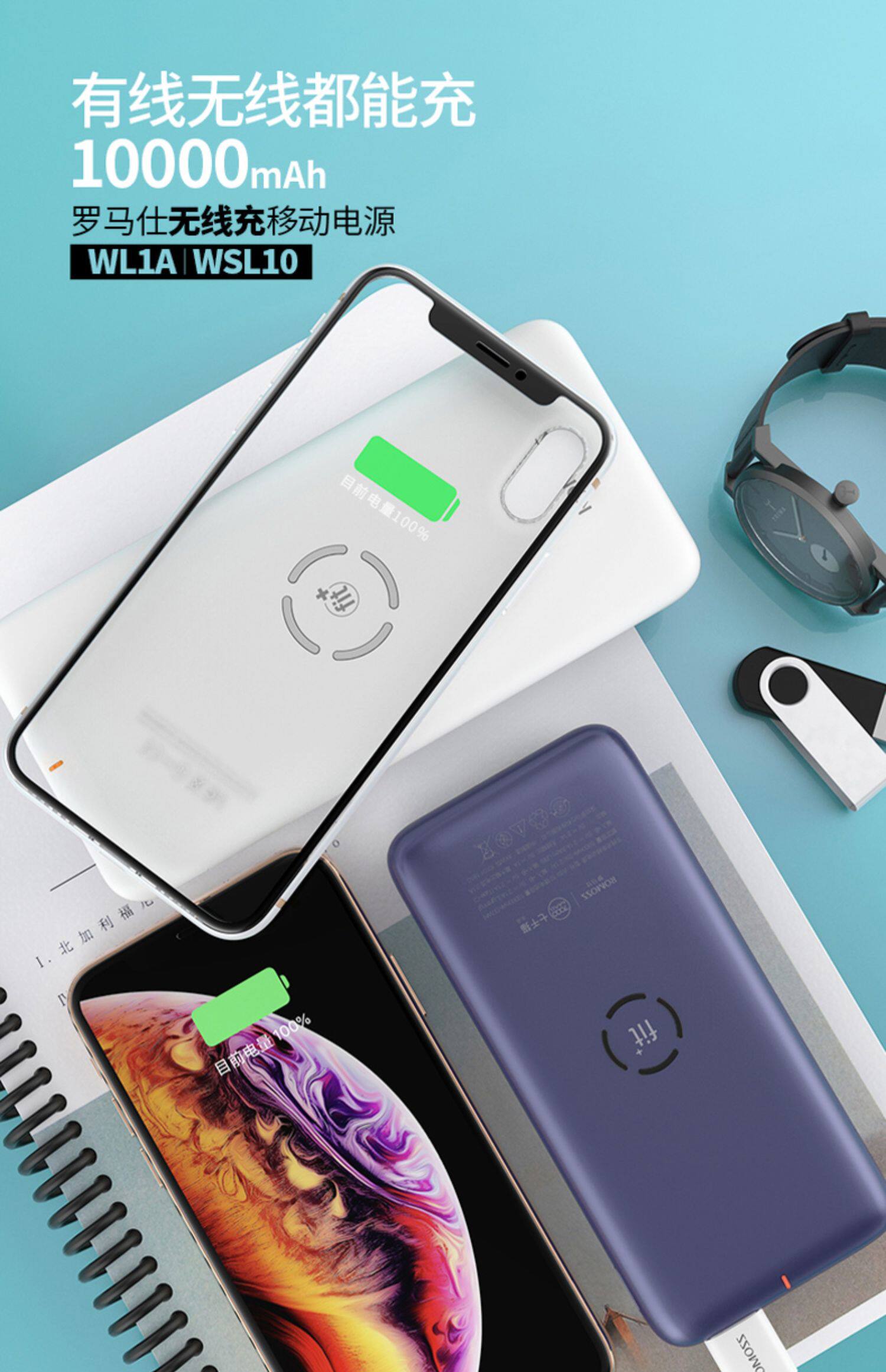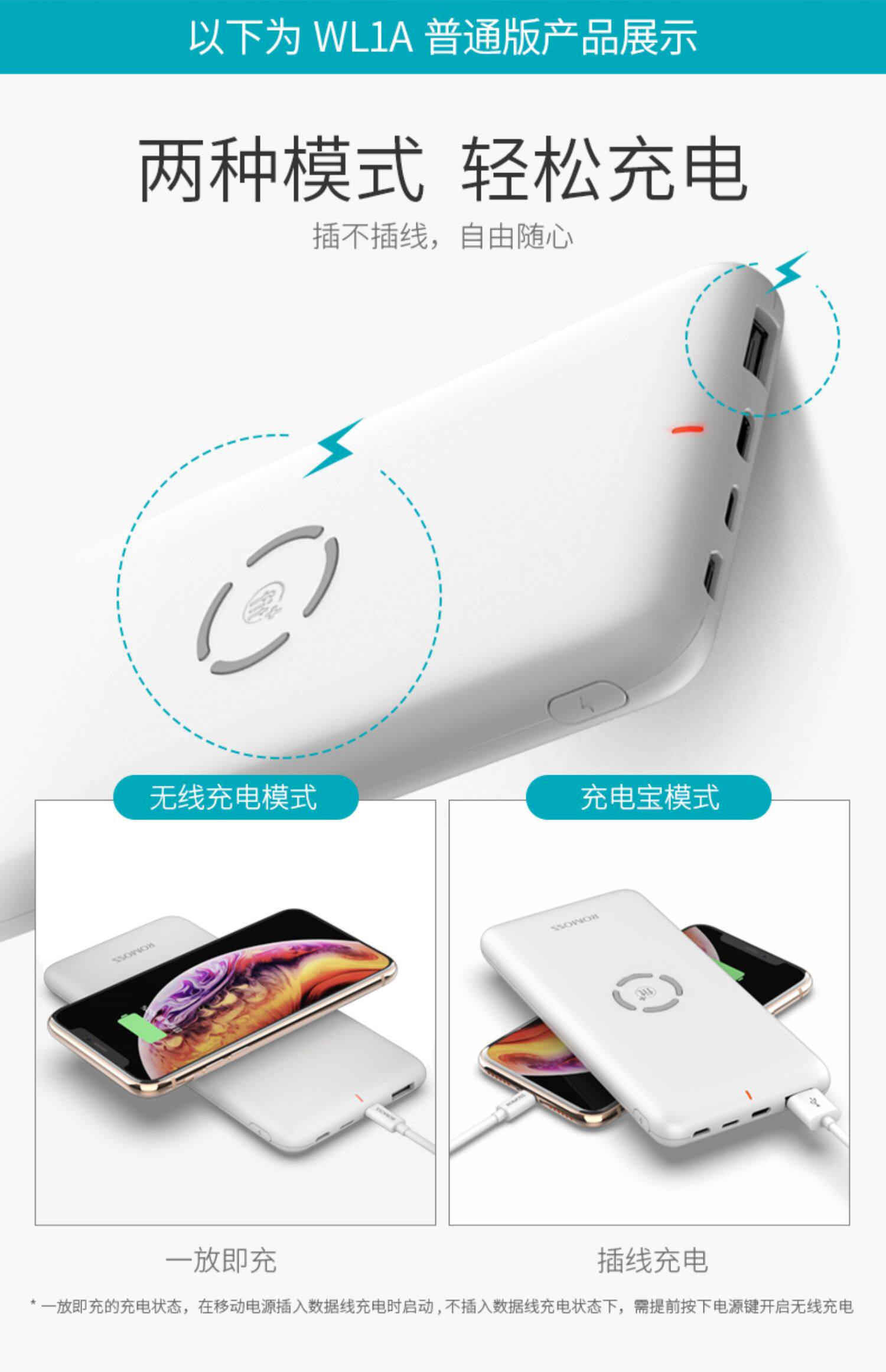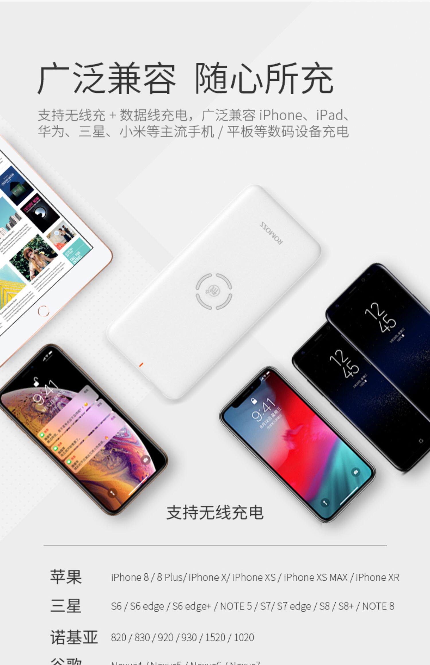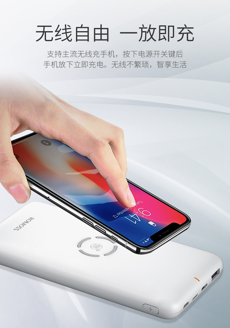 Ромис 10000 мАч быстро зарядка флэш -зарядки беспроводная зарядка сокровища применимо