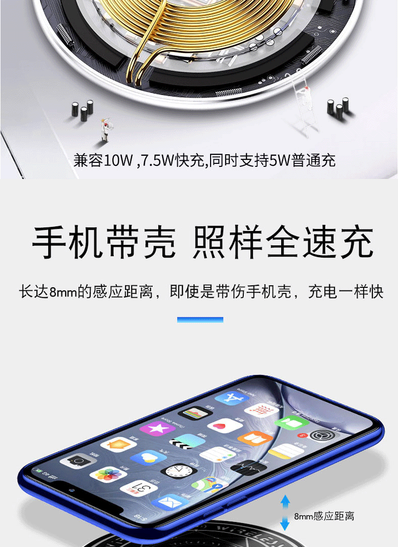 Беспроводное зарядное устройство Magic array подходит для быстрой зарядки Apple 11/8/xr/Android Huawei p30pro Xiaomi 9.