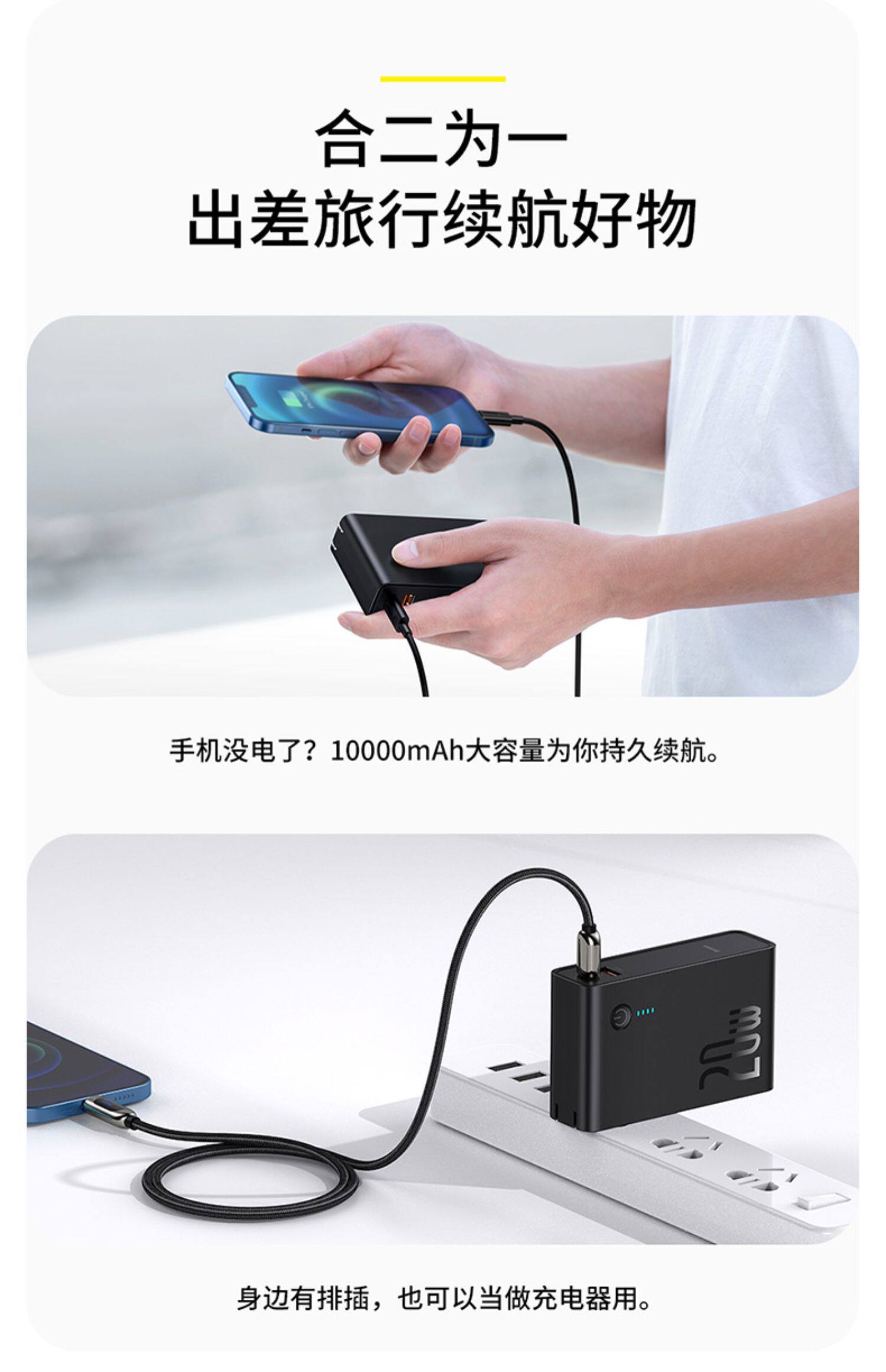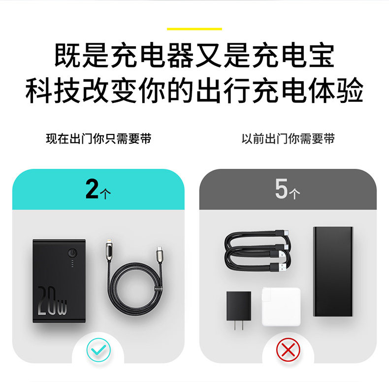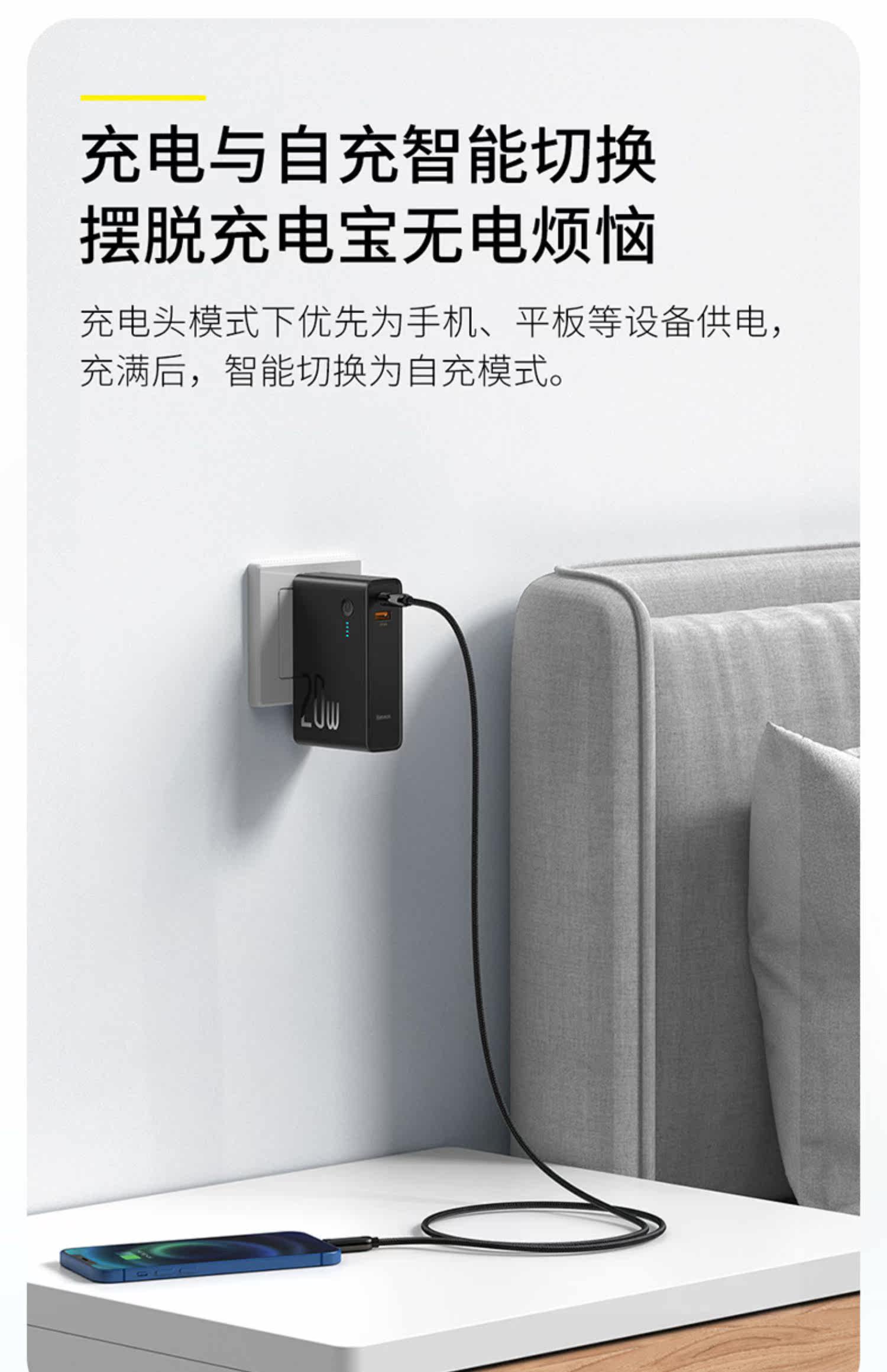 Apple, зарядное устройство с зарядкой, мобильный телефон, iPhone12 Pro, маленький ультратонкий блок питания, iphone, 2 в 1, 20W, 10000mah