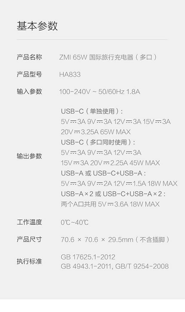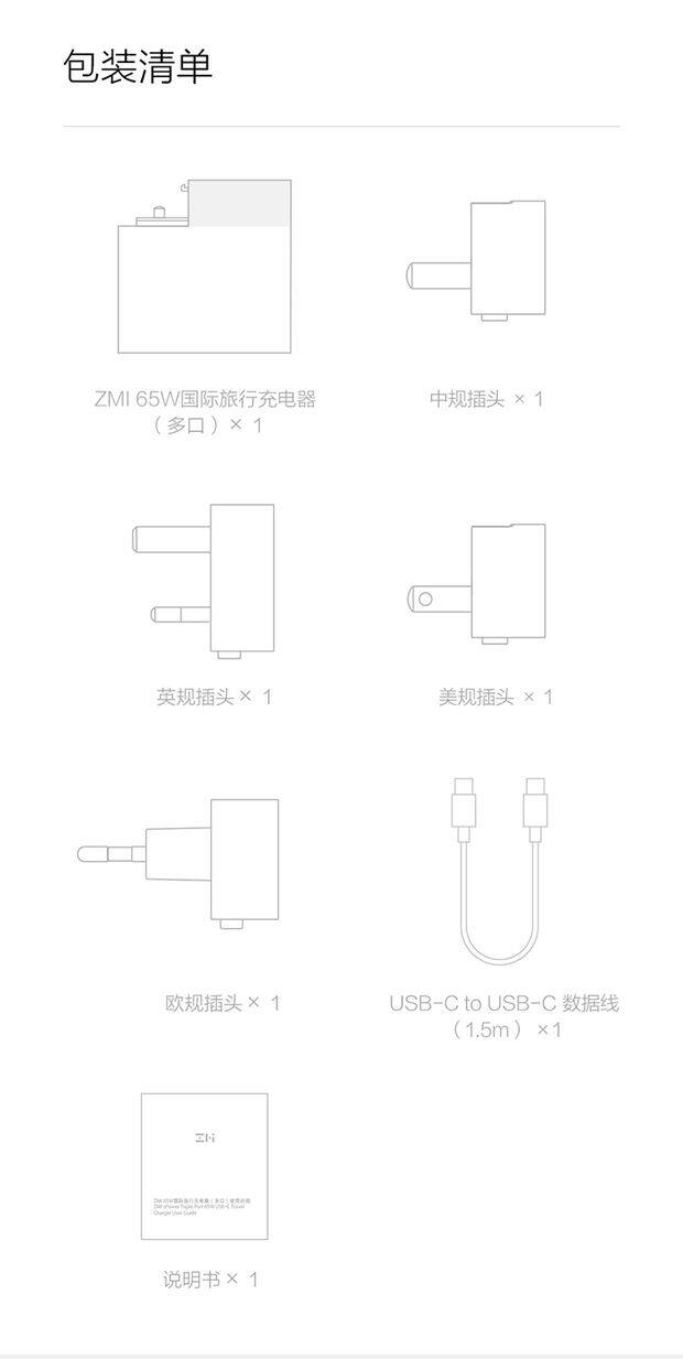 Zmi Zimi International Version Multi -National Travel Presting PD65W Быстрая взимание с Терминальные европейские правила США
