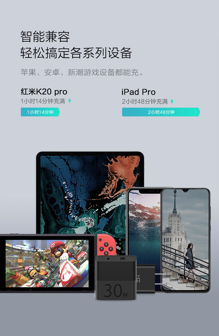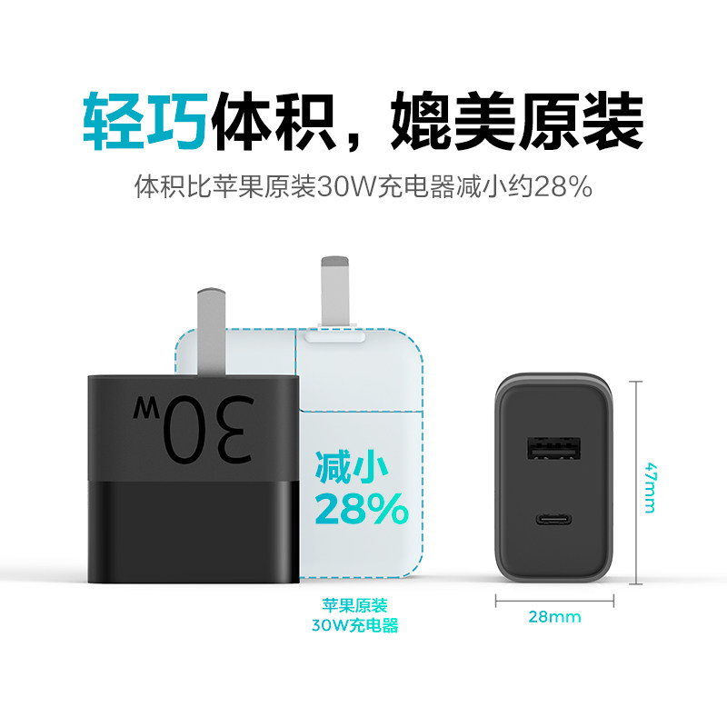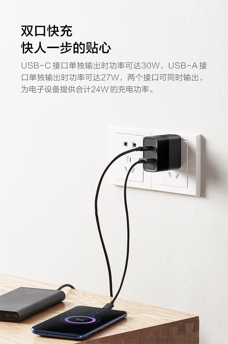 ZMI Двухпортовое зарядное устройство Zimi 30WPD для iPad, Apple, быстрая зарядка 20 Вт, универсальная головка Android, подходит для iPhone12