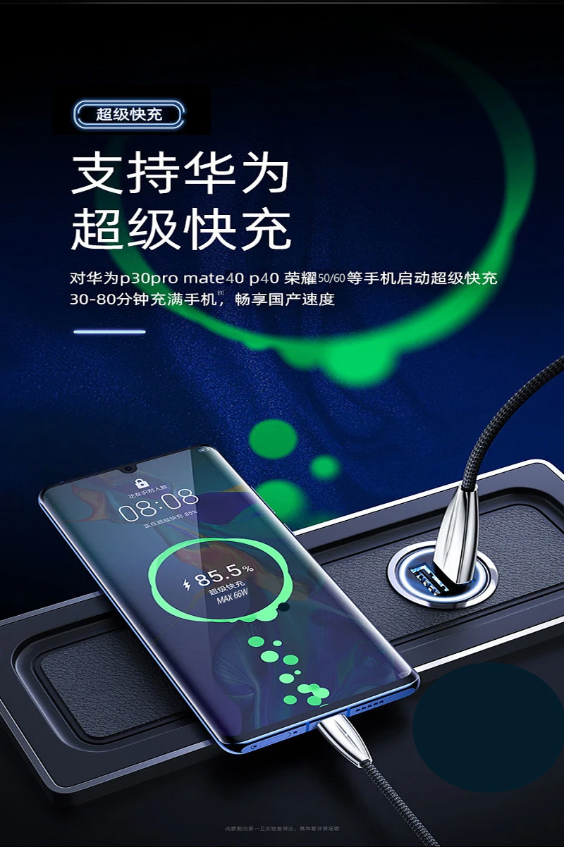 Применимо 66 Вт Huawei P40mate40 Honor 60 Samsung S21S22 Супер быстрая зарядка 2.0 Car Charger 45W