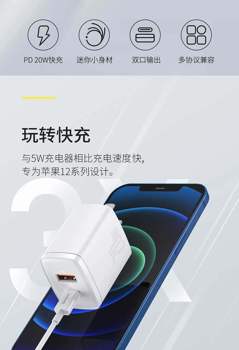 - 【Белый】 20 Вт двойной порт PD Fast Fasterging ★ Apple Full Series Universal ★ Без повреждений машины