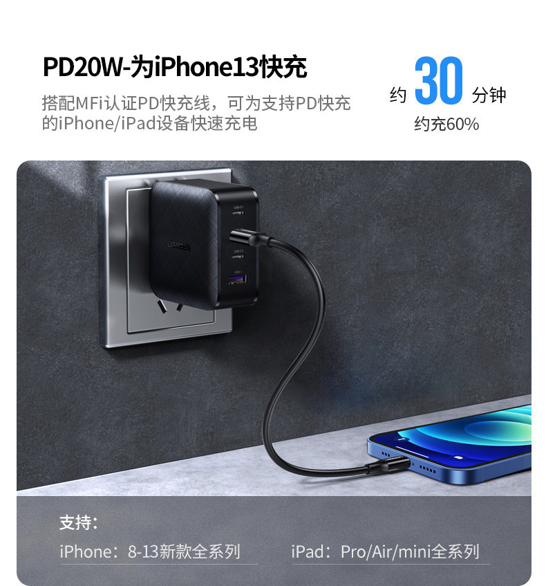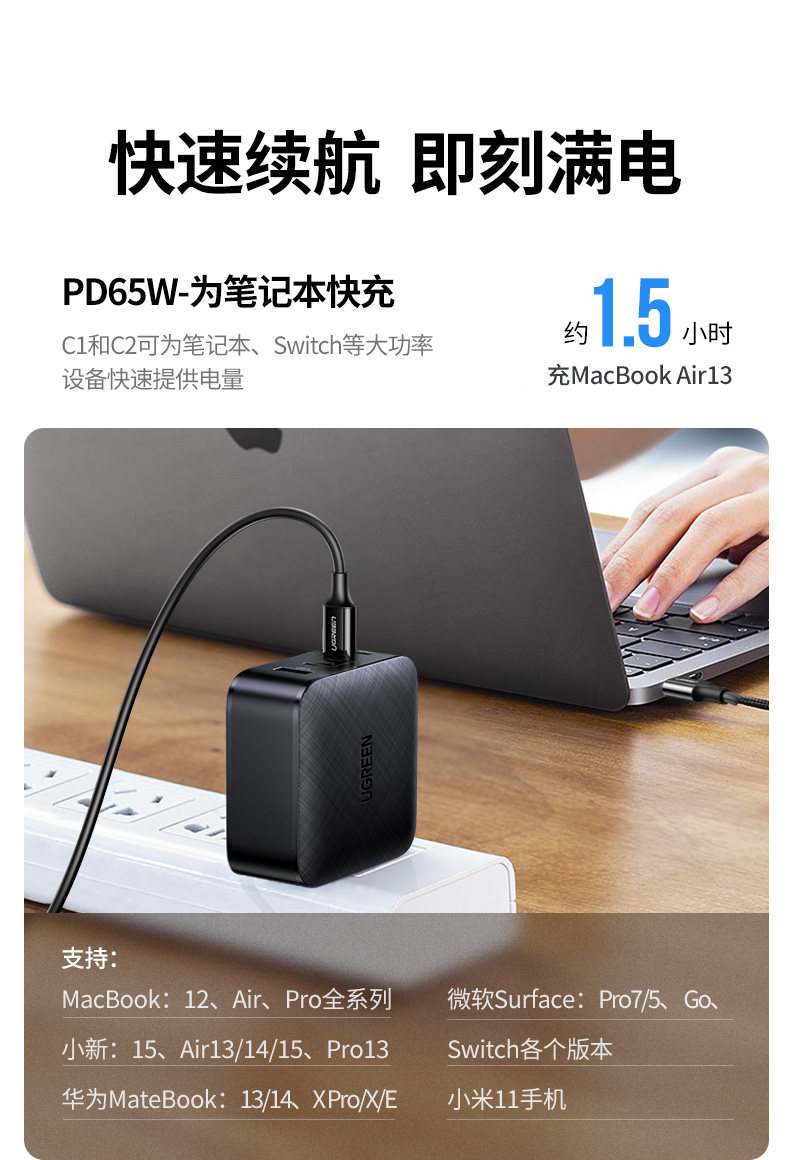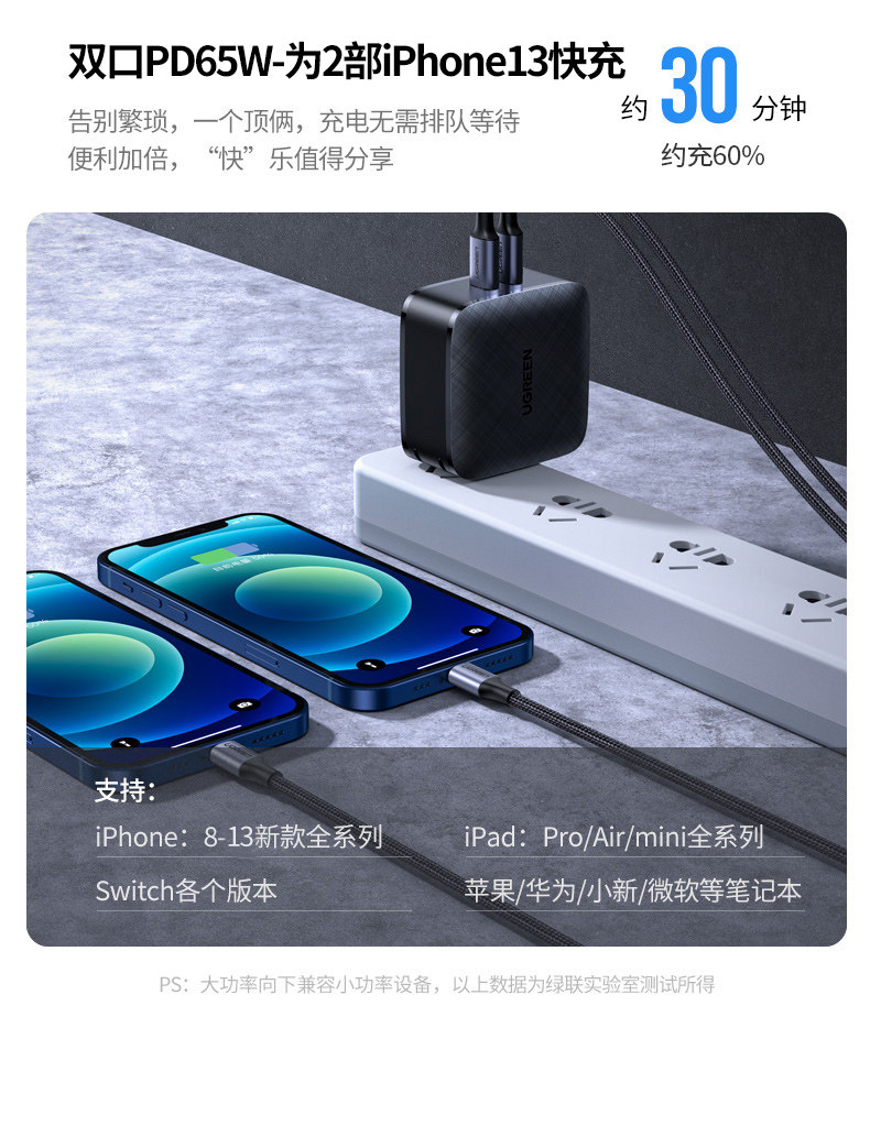 绿联 Huawei, xiaomi, apple, зарядное устройство, iPhone15 Pro, совместимый мобильный телефон, универсальный ноутбук, 65W, iphone, pro14, macbook