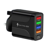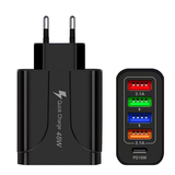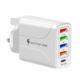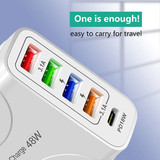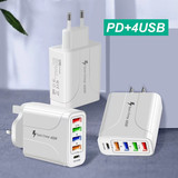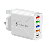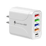 С LED 4USB+PD Fast Charge Mobile Phone 48W Зарядное устройство Multi -Port, Европа, Америка, Великобритания, Австралия, индивидуальная зарядка для путешествий