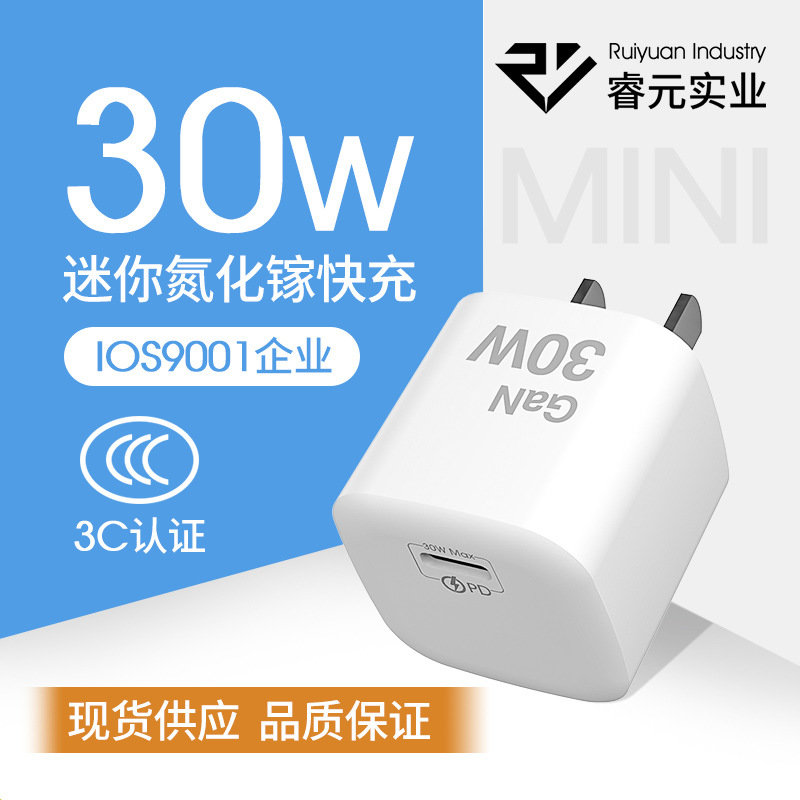 Маленький объем азот 充 Gan Charger PD30W Зарядка применима к супер быстрой зарядке Huawei iPhone13