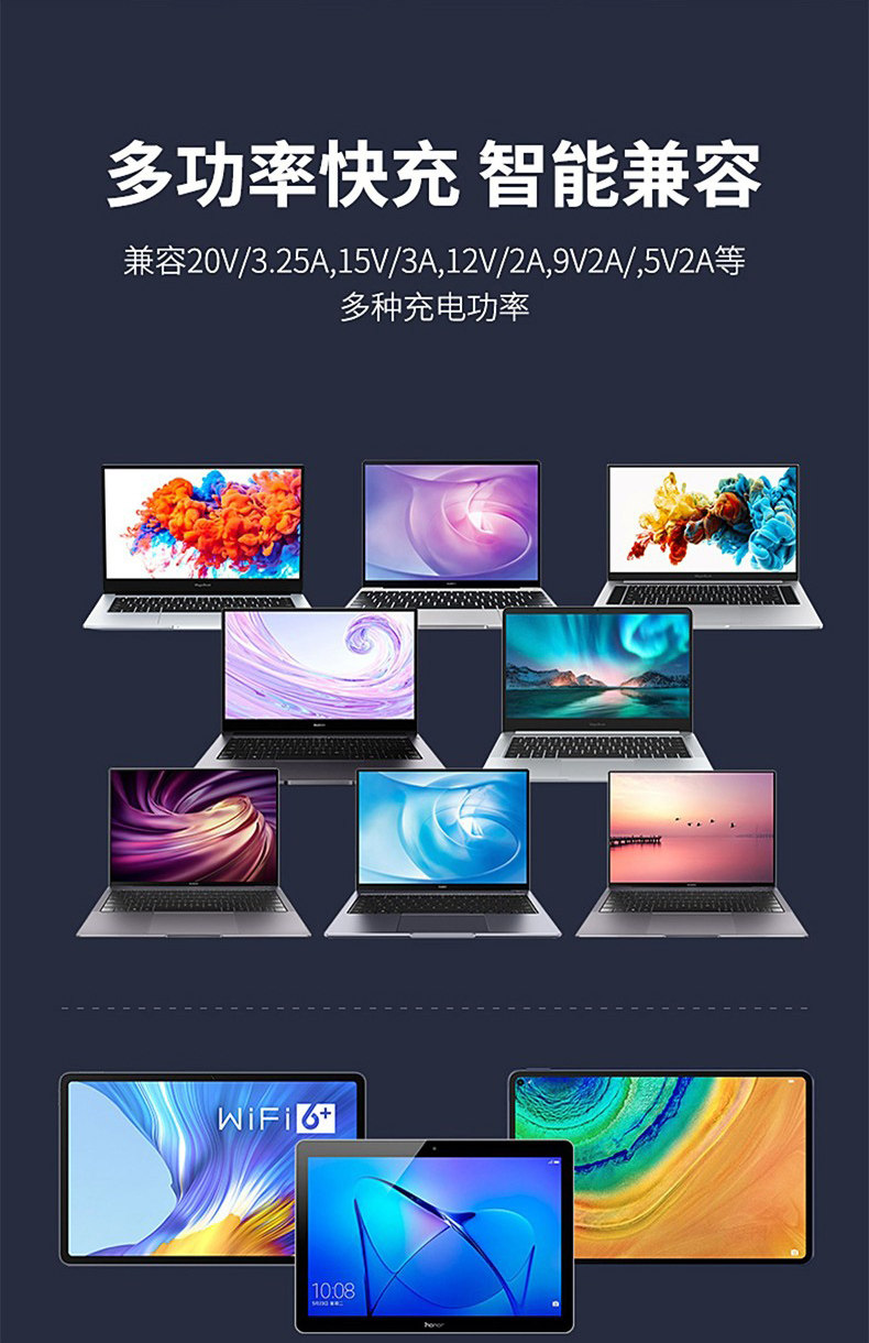 Применимый Huawei Notebook Computer Computer Head Head 65W Super Fast Fasting MateBook13/14/15/XS/E Honor Magic Computer Adapter Подличный кабель данных PD CRDC1351
