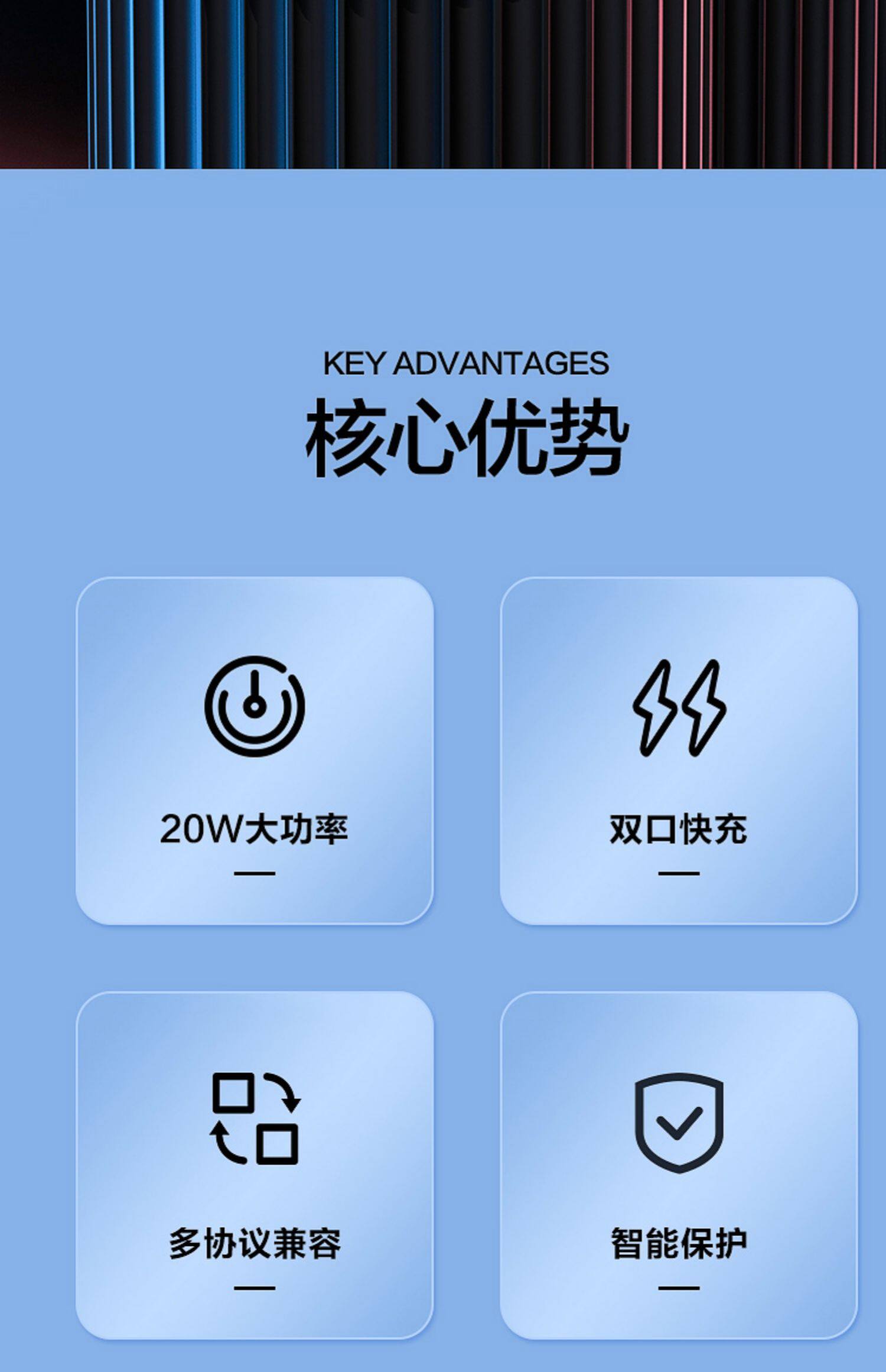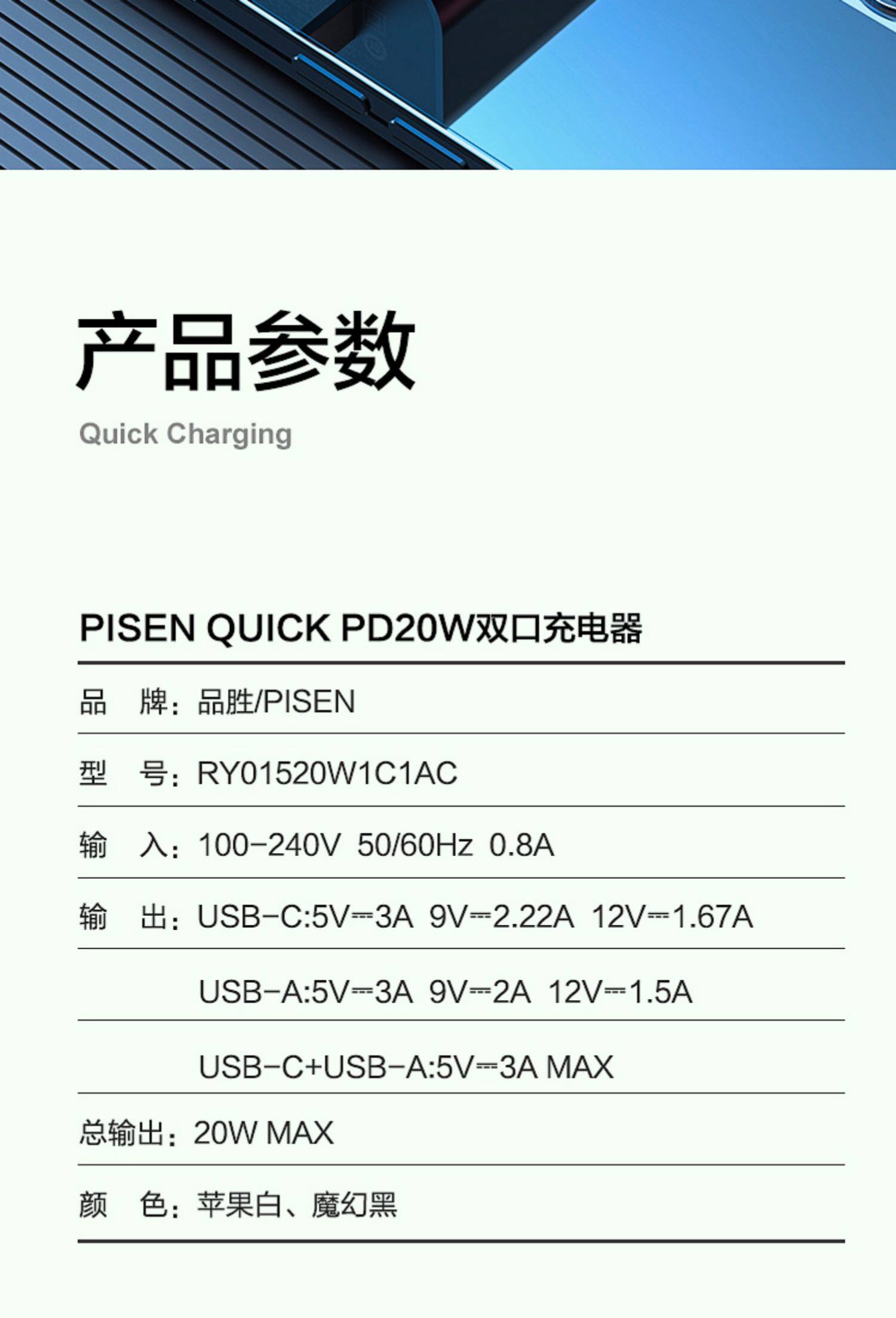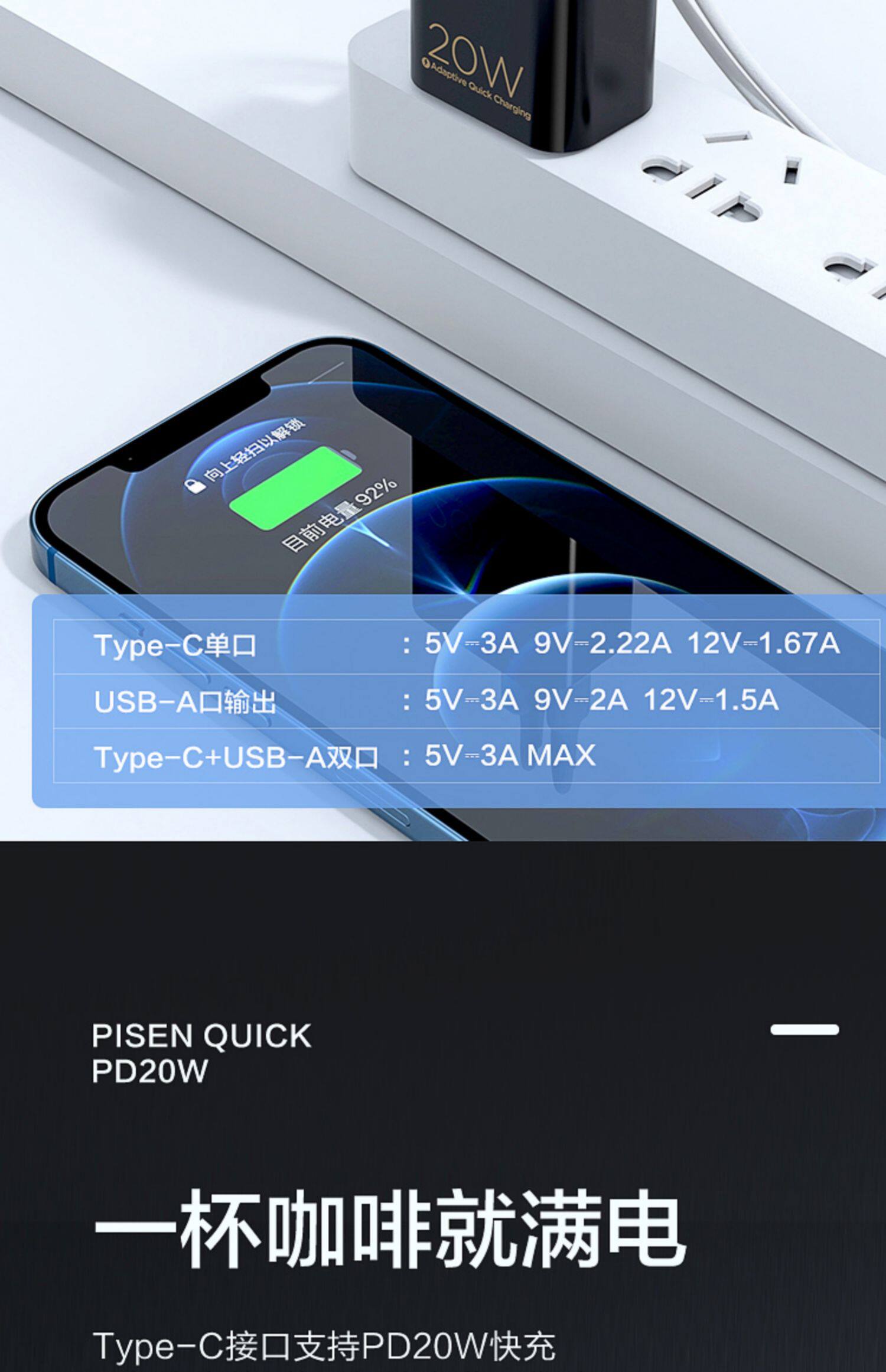 - Двойное зарядное устройство 20 Вт [Type-C + USB Dual Output]