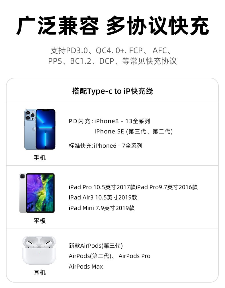 - [Apple Mobile Phone/iPad Fast Charge Set] с 1 -метровым кабелем быстрого зарядки PD