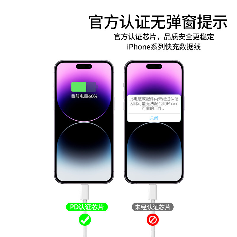 - Официальная сертификация [PD30W быстрая зарядка] Дайте 1,5 -метровую линию быстрого зарядки 1,5 метра