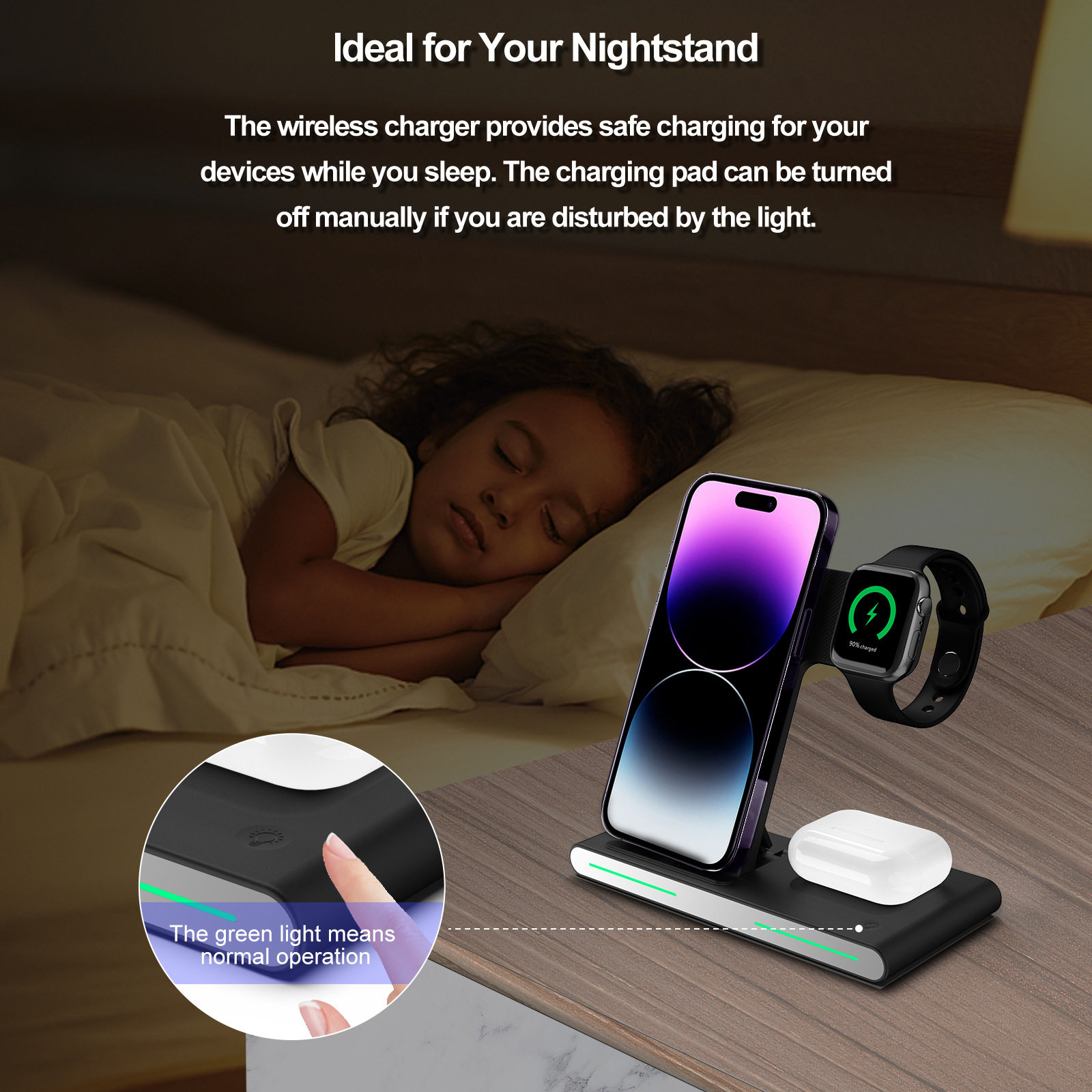 Подставка для беспроводного зарядного устройства Держатель для зарядки 3 в 1 Телефонная гарнитура