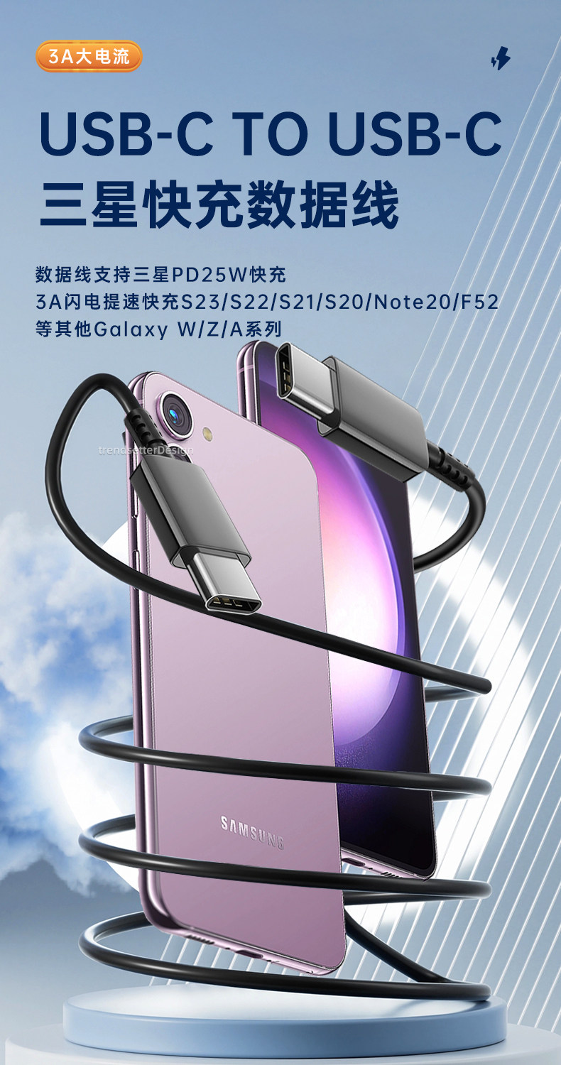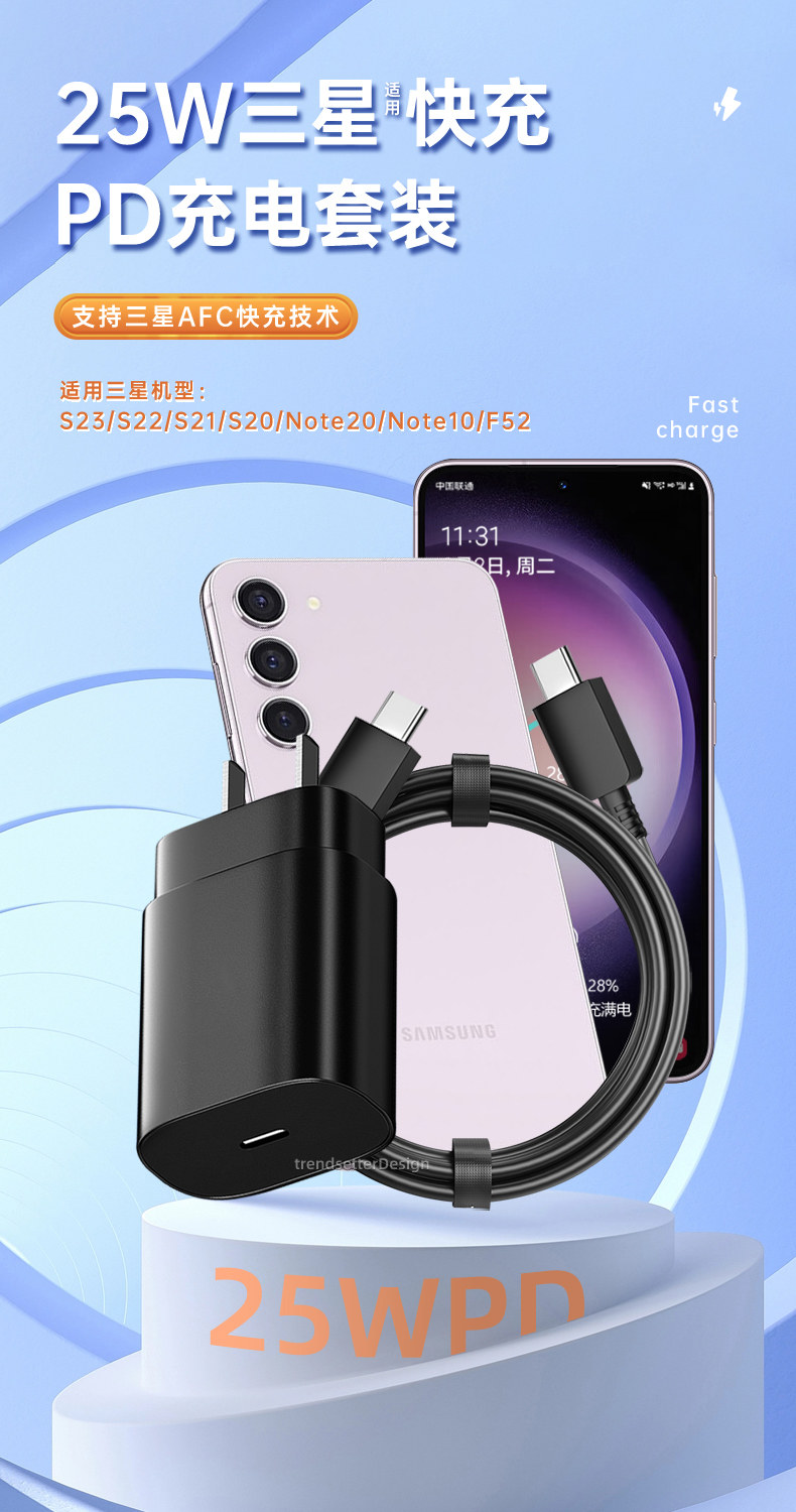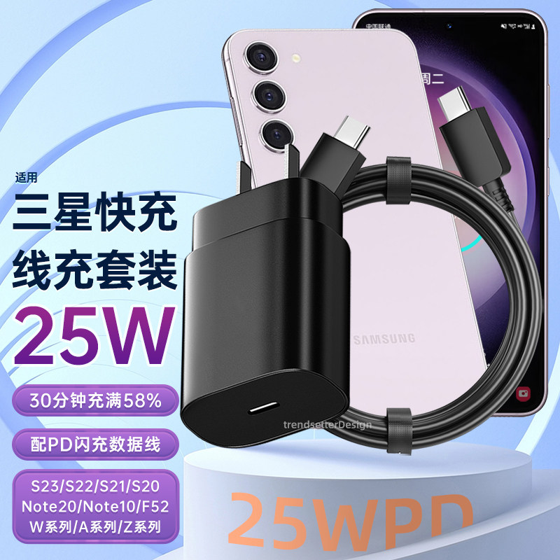 Применимо к терминалу зарядного устройства Samsung 25 Вт быстрая зарядка S23/S22/S21/S20/Note20 Ultra/F52/A53 Cable Cable PD PD