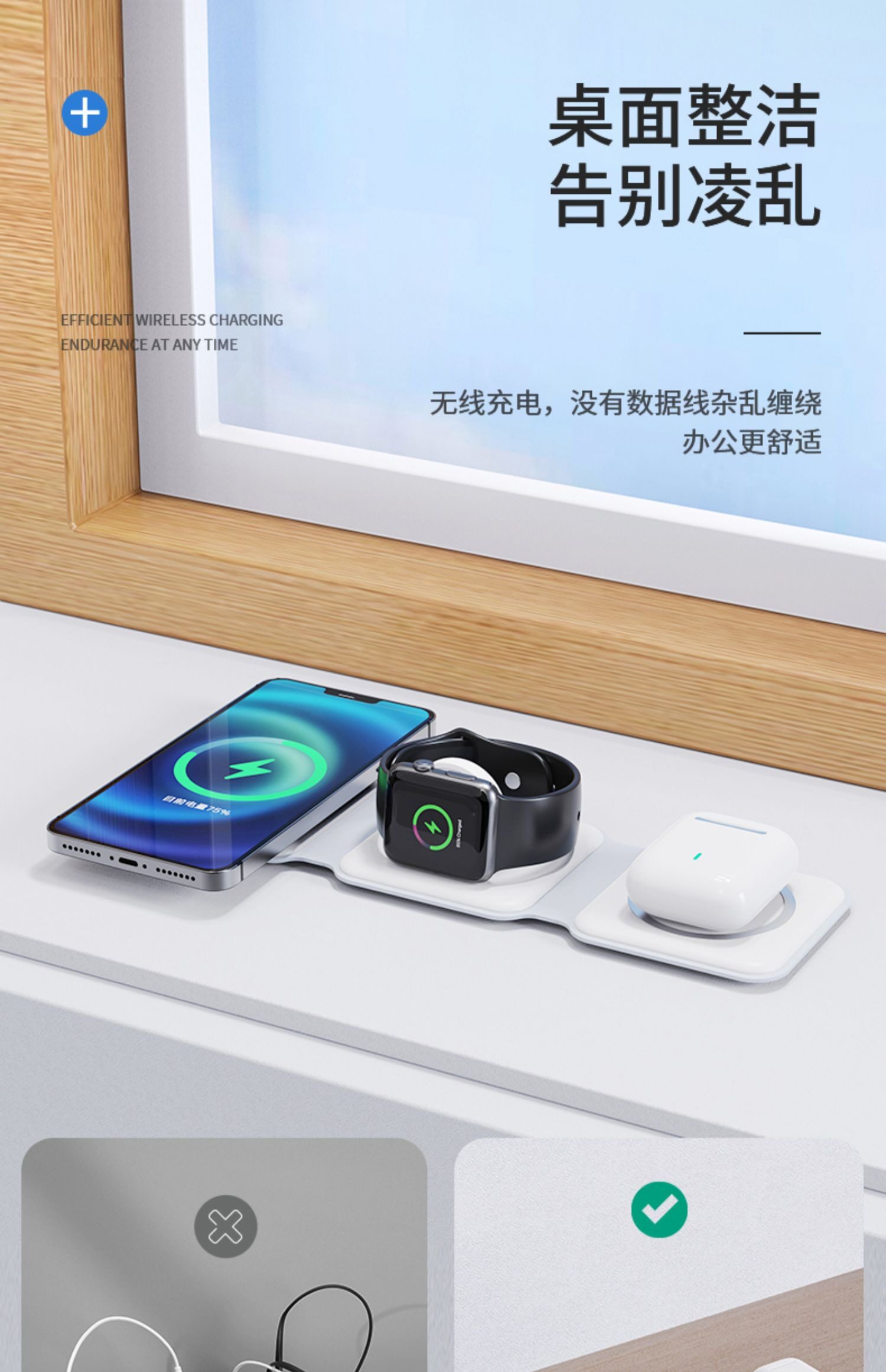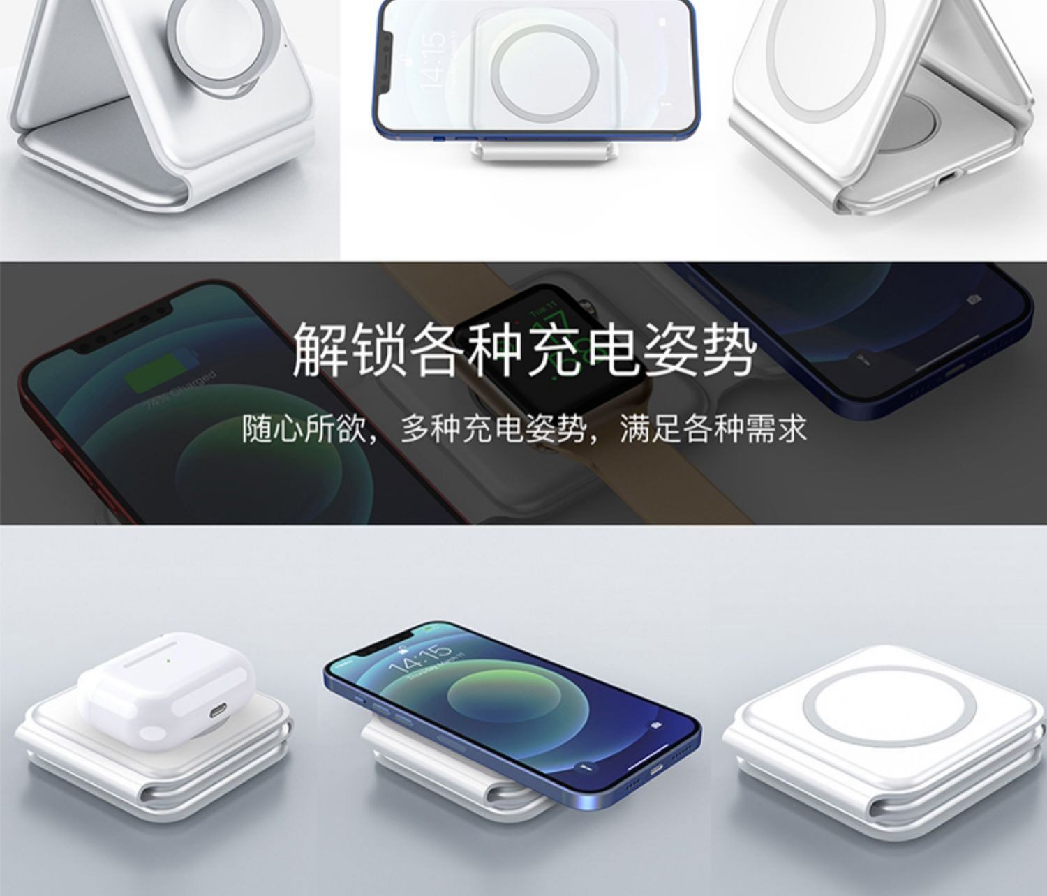 Apple, совместимое беспроводное зарядное устройство, трубка, iPhone13 Pro, есть синхронизация с телефоном, часы, наушники, «три в одном», iphone, 15W