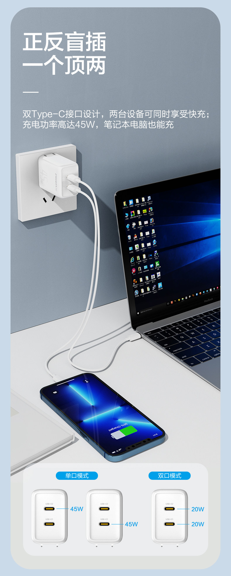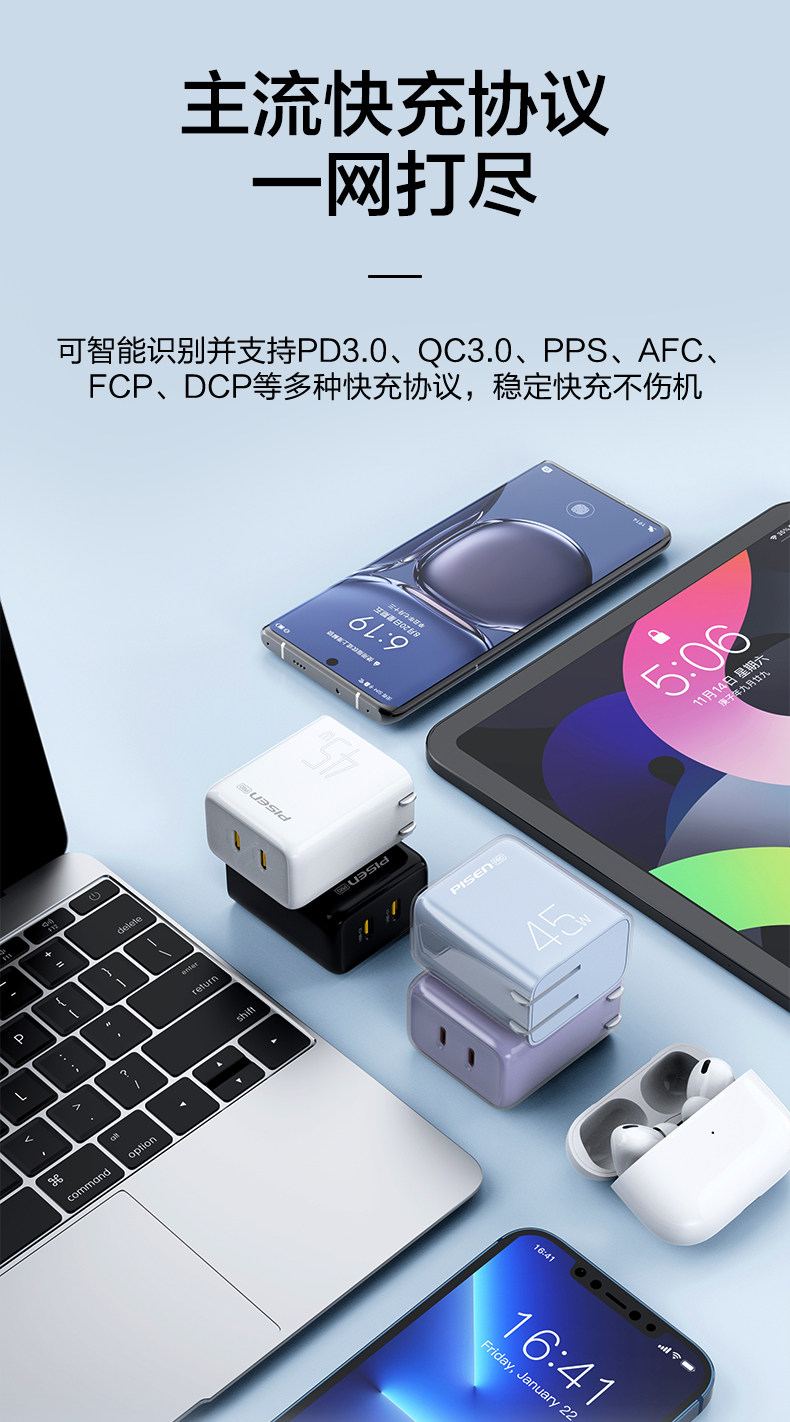 Совместимое зарядное устройство, мобильный телефон, универсальный планшетный ноутбук, 45W, 16promax, iphone