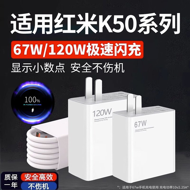 67W Зарядное устройство Speed Flash Зарядка CRDC подходит для Xiaomi Redmi K50PRO Mobile Phone Зарядка электрическая головка Redmik50 Supreme Version K50 E -версия быстрого зарядки 120W6A Кабель данных 2 метра 1351