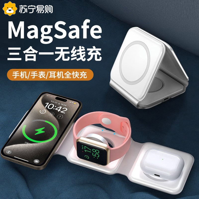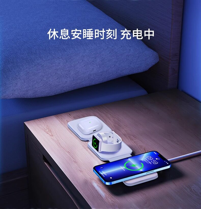 Apple, беспроводное складное зарядное устройство, совместимый iPhone 15, часы, есть синхронизация с телефоном, наушники, универсальная трубка, «три в одном», iphone