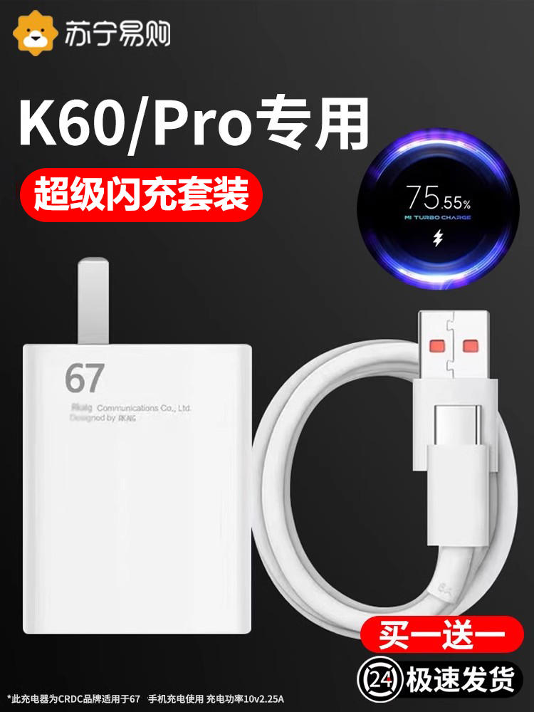 67 Flash Charger применимо xiaomi Redmi K60 Head Head K60 Super Flash Зарядка K60PRO Мобильный телефон Type-C Кабель данных Redmik60 Special Mlassing 120 Подлинный набор W1351 W1351