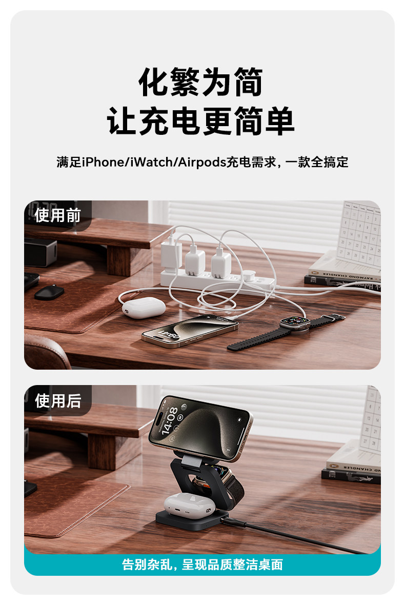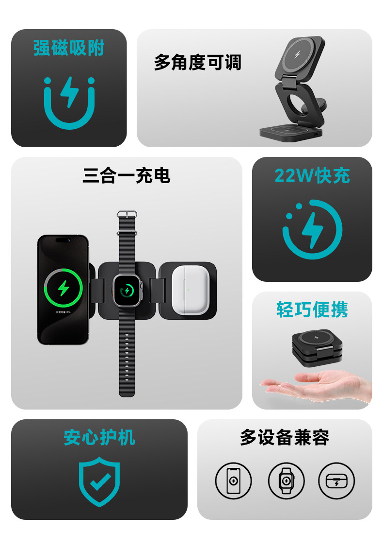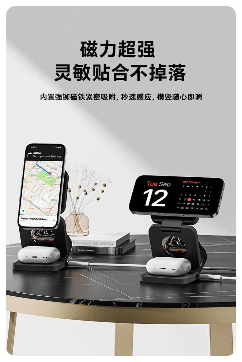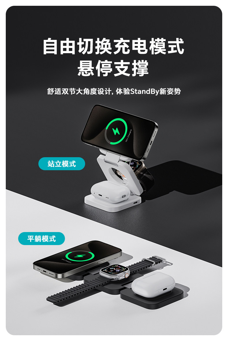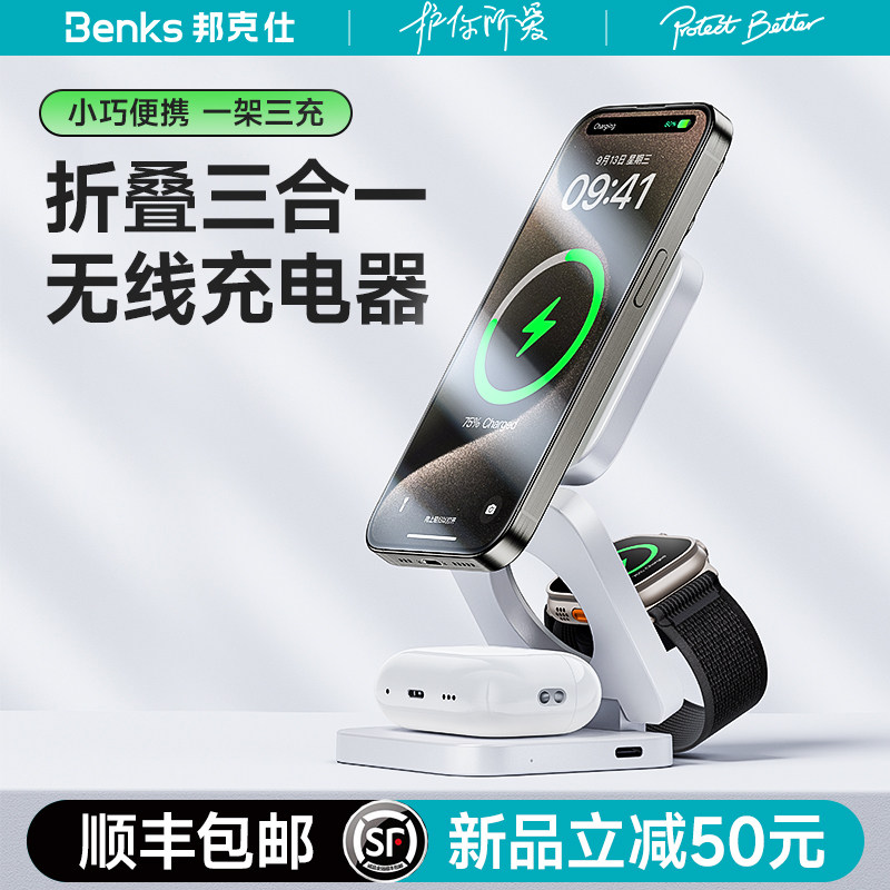 Бенкс новая складывающаяся трех -в -одном беспроводном зарядном устройстве Magsafe Magnetic Desktop Base подходит для яблок