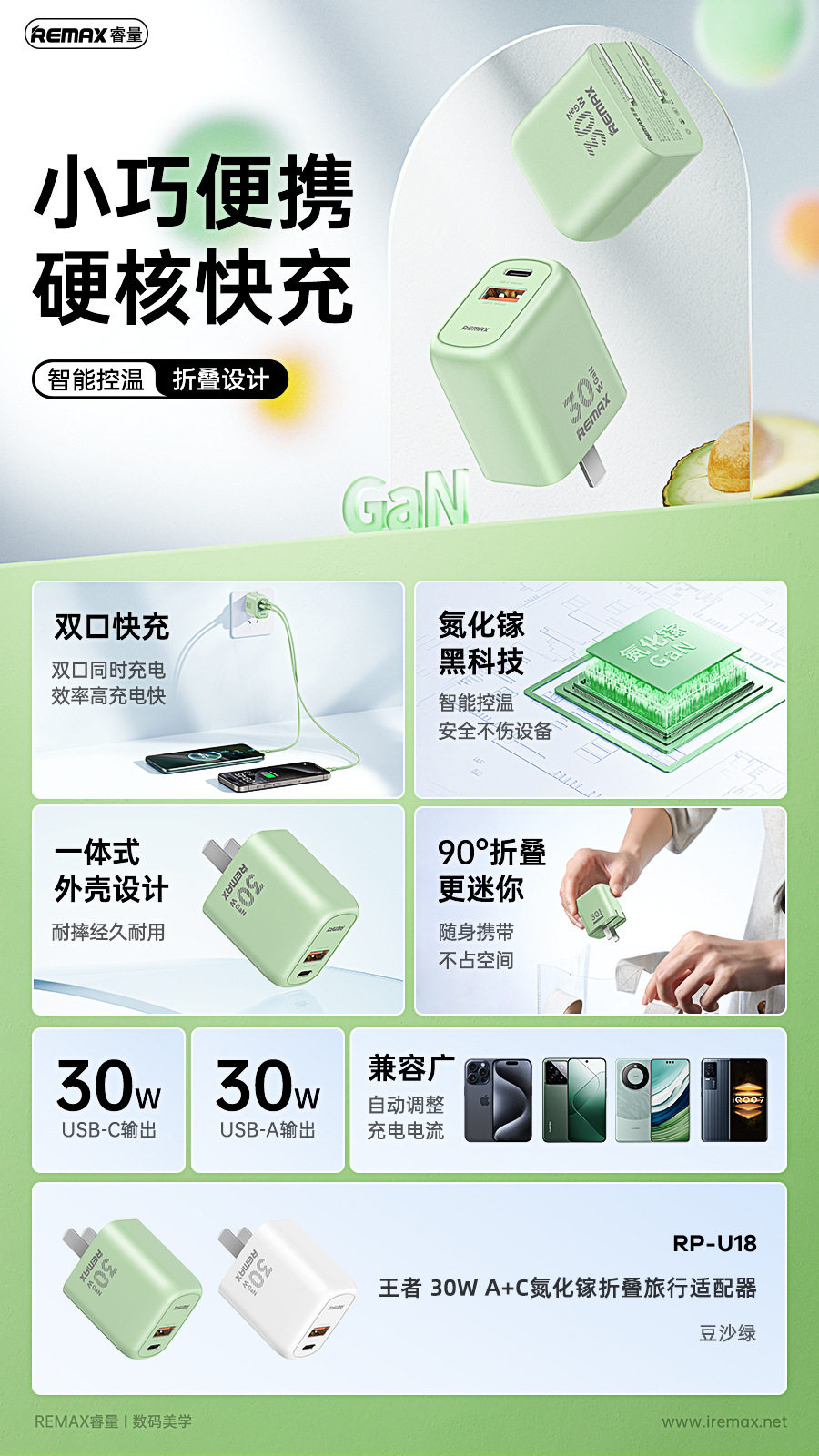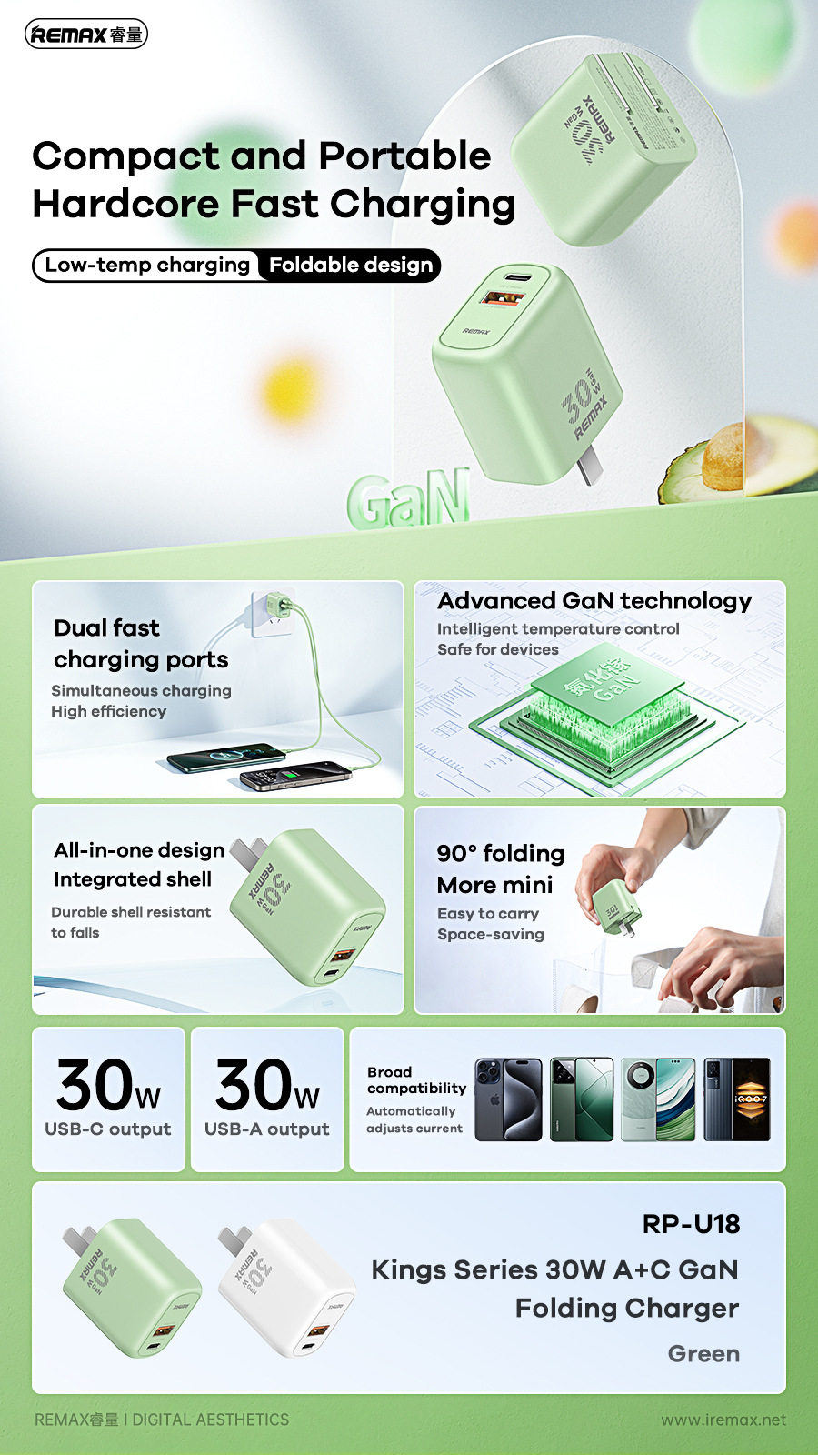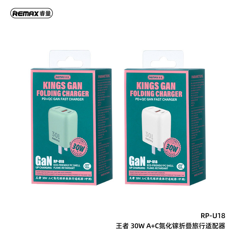 Remax King PD 30W азот азот 镓 A+C Маленькая компактная складка на долгий путь с хорошо справедливой головкой зарядного устройства RP-U18